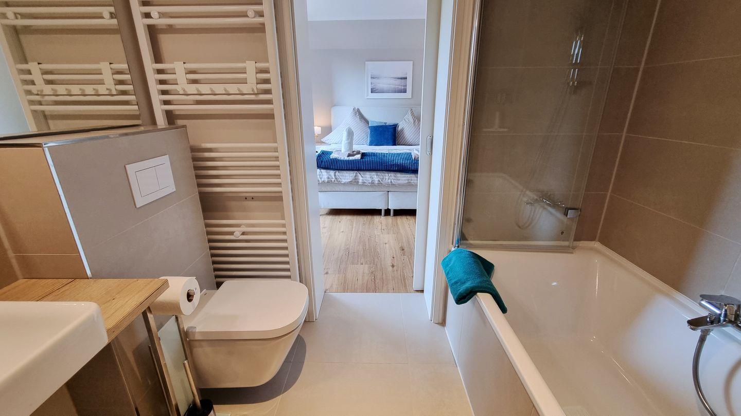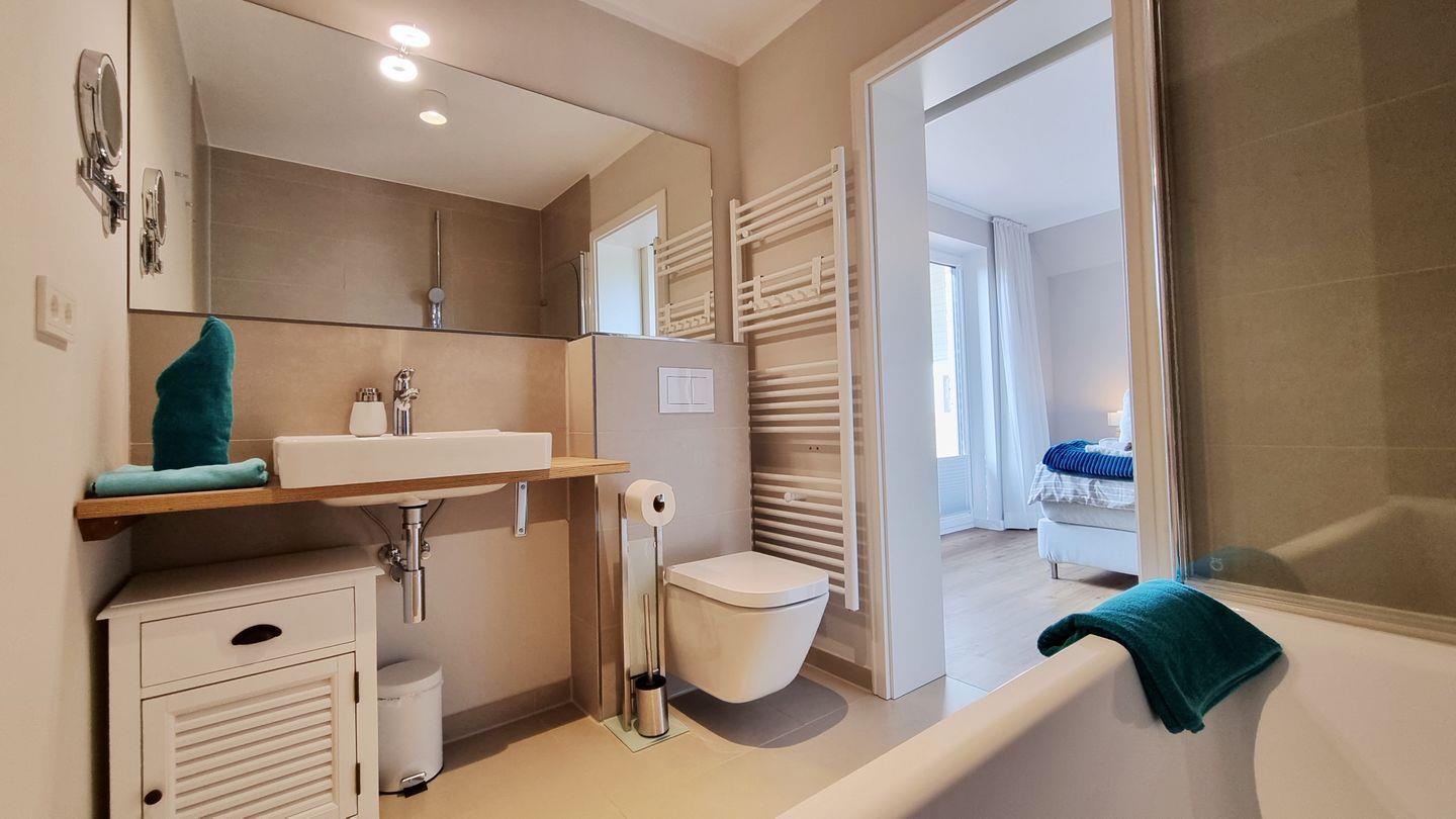 Badezimmer I: Dusche / Waschbecken / WC / Handtuchheizkörper