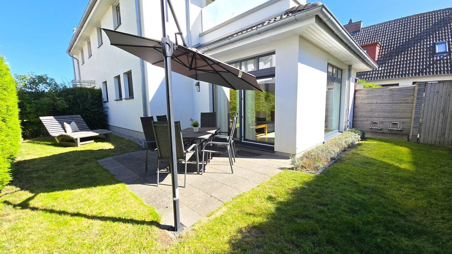 Die zugehörige Terrasse nebst 80qm eingezäuntem Garten, lädt zum Ostseeluft schnuppern und draußen sitzen ein. Von hier lässt sich wunderbar die Seele baumeln und dabei das Meer rauschen hören. Und das Beste, zur Ostsee sind es fußläufig gerade einmal ca. 30m