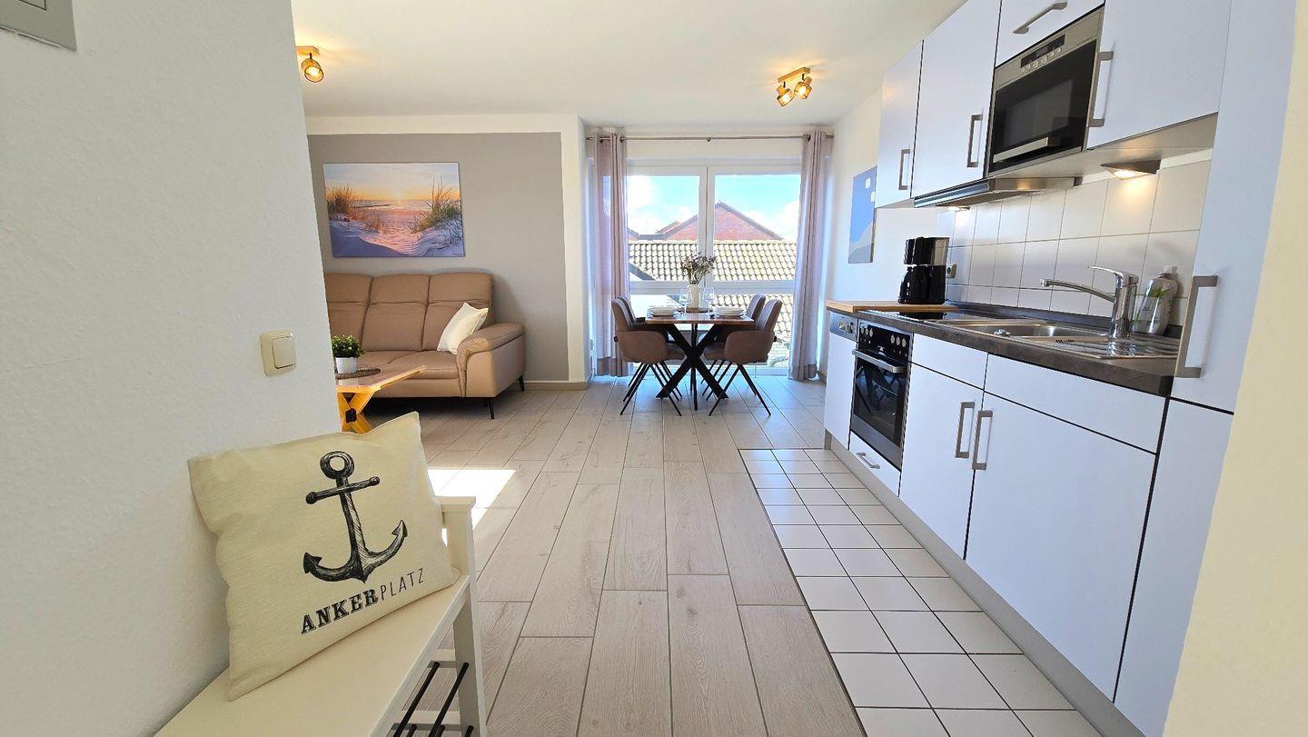 Die frisch renovierte Ferienwohnung „Ankerplatz“ in Schönberg bietet Platz für 2 Personen und liegt nur wenige Schritte vom Strand und der Seebrücke entfernt. Mit offenem Wohnbereich, modernem Bad und Küche ist sie ideal für Paare. Hund willkommen. Gemeinschaftswaschmaschine, Sauna und Parkplatz sind vorhanden.