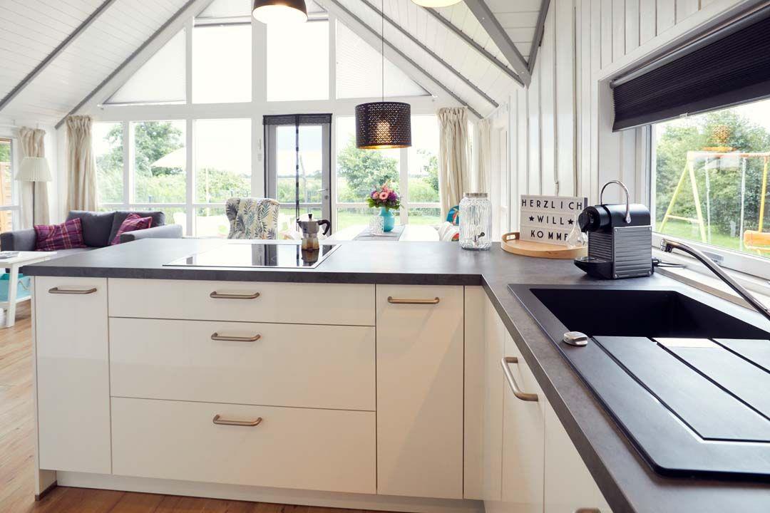 Das Innere des Ferienhauses ist genauso beeindruckend wie die Außenanlage. Der offene Küchen-, Ess- und Wohnbereich schafft eine einladende Atmosphäre, in der Sie gemeinsame Mahlzeiten zubereiten, essen und entspannen können. Die Küche ist mit modernsten Geräten ausgestattet, einschließlich einer hochwertigen Einbauküche von Nolte. Hier finden Sie alles, was Sie für die Zubereitung köstlicher Speisen benötigen, von einem Induktions-Kochfeld über eine Kaffeemaschine und eine Nespresso-Maschine bis hin zu einem Eierkocher. Ein Kühlschrank mit Gefrierfach, ein Umluftbackofen, ein Wasserkocher, ein Toaster, ein Geschirrspüler und vieles mehr stehen Ihnen ebenfalls zur Verfügung.
