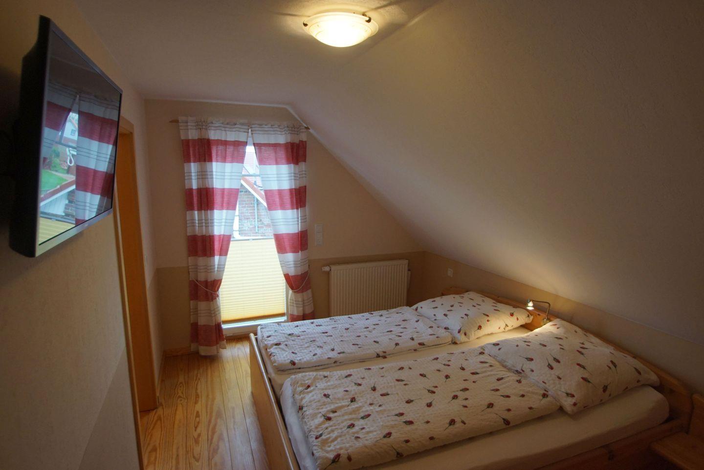 Das Ferienhaus verfügt über insgesamt drei gemütliche Schlafzimmer, die Ihnen einen erholsamen Schlaf bieten. Das erste Schlafzimmer ist mit einem komfortablen Doppelbett und einem Außenrollladen ausgestattet, der Ihnen einen ruhigen und entspannten Schlaf ermöglicht. Die beiden Schlafzimmer im Obergeschoss bieten jeweils ein großes Doppelbett mit zwei Matratzen, geräumige Kleiderschränke und Fernseher. Hier können Sie sich zurückziehen und Ihre Lieblingssendungen genießen.