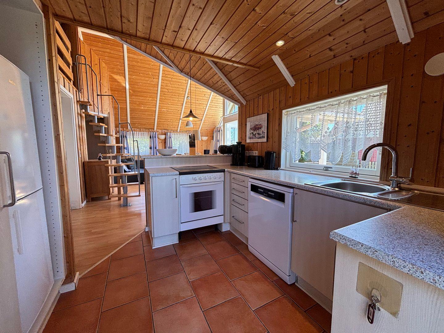 Nun gehen wir ins Innere des Objekts, wo Sie von einem einladenden offenen Küche-/Essbereich-/Wohnzimmer empfangen werden. Die voll ausgestattete Einbauküche bietet Ihnen alles, was Sie für die Zubereitung köstlicher Mahlzeiten benötigen, einschließlich Mikrowelle, Ceran-Kochfeld, Kaffeemaschine, Kühlschrank mit Gefrierfach, Umluftbackofen, Wasserkocher und Geschirrspüler. Hier können Sie sich frei entfalten und Ihre kulinarischen Fähigkeiten unter Beweis stellen.