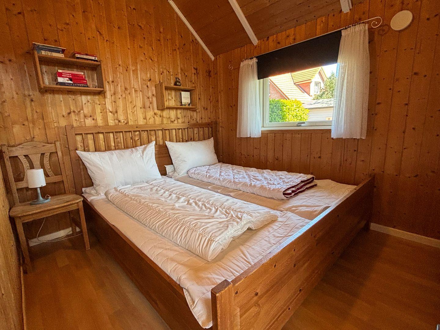 Das Ferienobjekt verfügt über zwei Schlafzimmer, die Ihnen nach einem ereignisreichen Tag Ruhe und Erholung bieten. Im ersten Schlafzimmer erwartet Sie ein großzügiges Doppelbett mit zwei komfortablen Matratzen und verdunkelnden Rollos, die Ihnen einen erholsamen Schlaf garantieren. Das zweite Schlafzimmer ist ebenfalls mit einem Doppelbett ausgestattet und verfügt über Verdunklungsrollos. Zudem steht ein Kinderreisebett bereit, um auch den jüngsten Mitgliedern Ihrer Gruppe einen gemütlichen Schlafplatz zu bieten. Darüber hinaus besteht die Möglichkeit, eine weitere Person im offenen Obergeschoss unterzubringen, was zusätzlichen Freiraum für Ihre Gäste schafft.