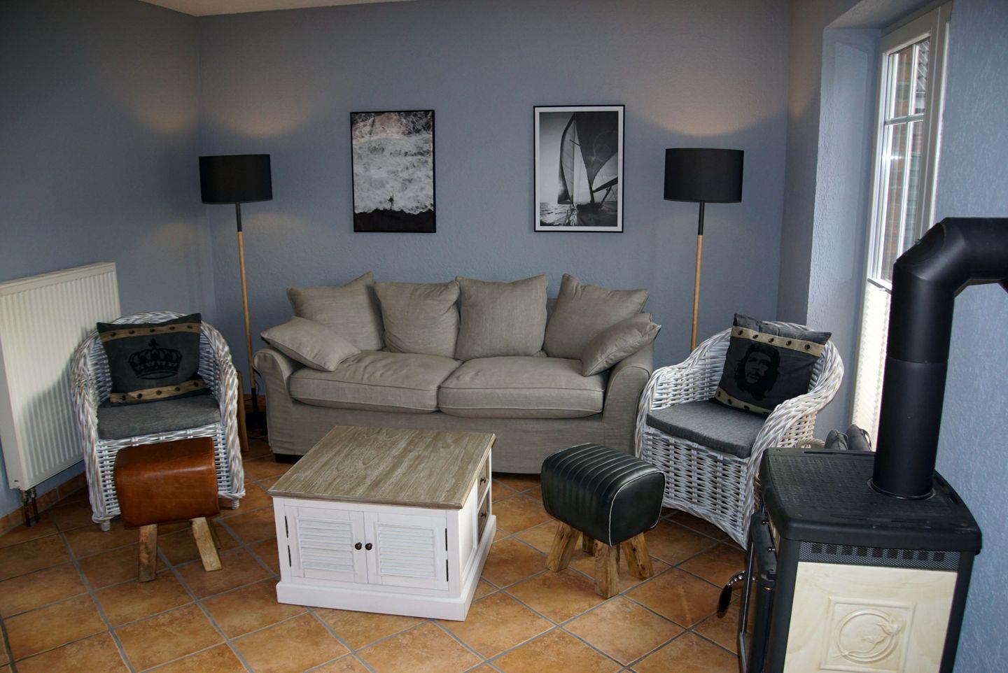 Das Wohnzimmer lädt zum Entspannen ein. Ein Flachbildfernseher steht Ihnen zur Verfügung, sodass Sie Ihre Lieblingsserien und -filme nicht verpassen müssen. Eine gemütliche Couch und zwei Sessel bieten ausreichend Platz für gesellige Abende. Besonders an kalten Tagen sorgt der Kamin für eine behagliche Atmosphäre.