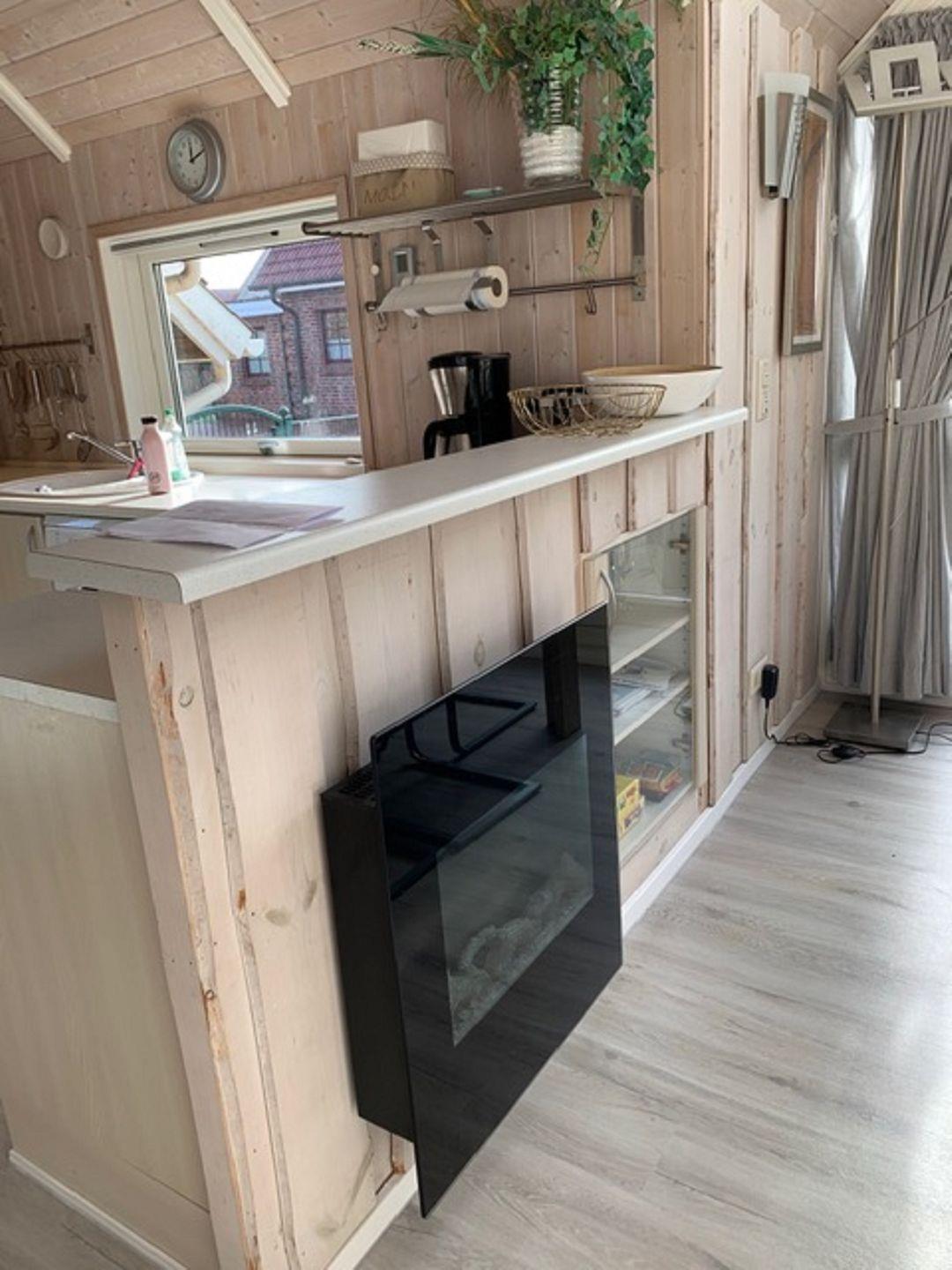 Im Inneren erwartet Sie eine geschmackvoll gestaltete offene Küche, die nahtlos in den Essbereich und das Wohnzimmer übergeht. Die Küche ist komplett ausgestattet und verfügt über alles, was Sie benötigen, einschließlich einer Mikrowelle, einem Ceran-Kochfeld, einer Kaffeemaschine, einem Kühlschrank mit Gefrierfach und vielem mehr. Hier können Sie Ihre Lieblingsgerichte zubereiten und sich wie zu Hause fühlen.