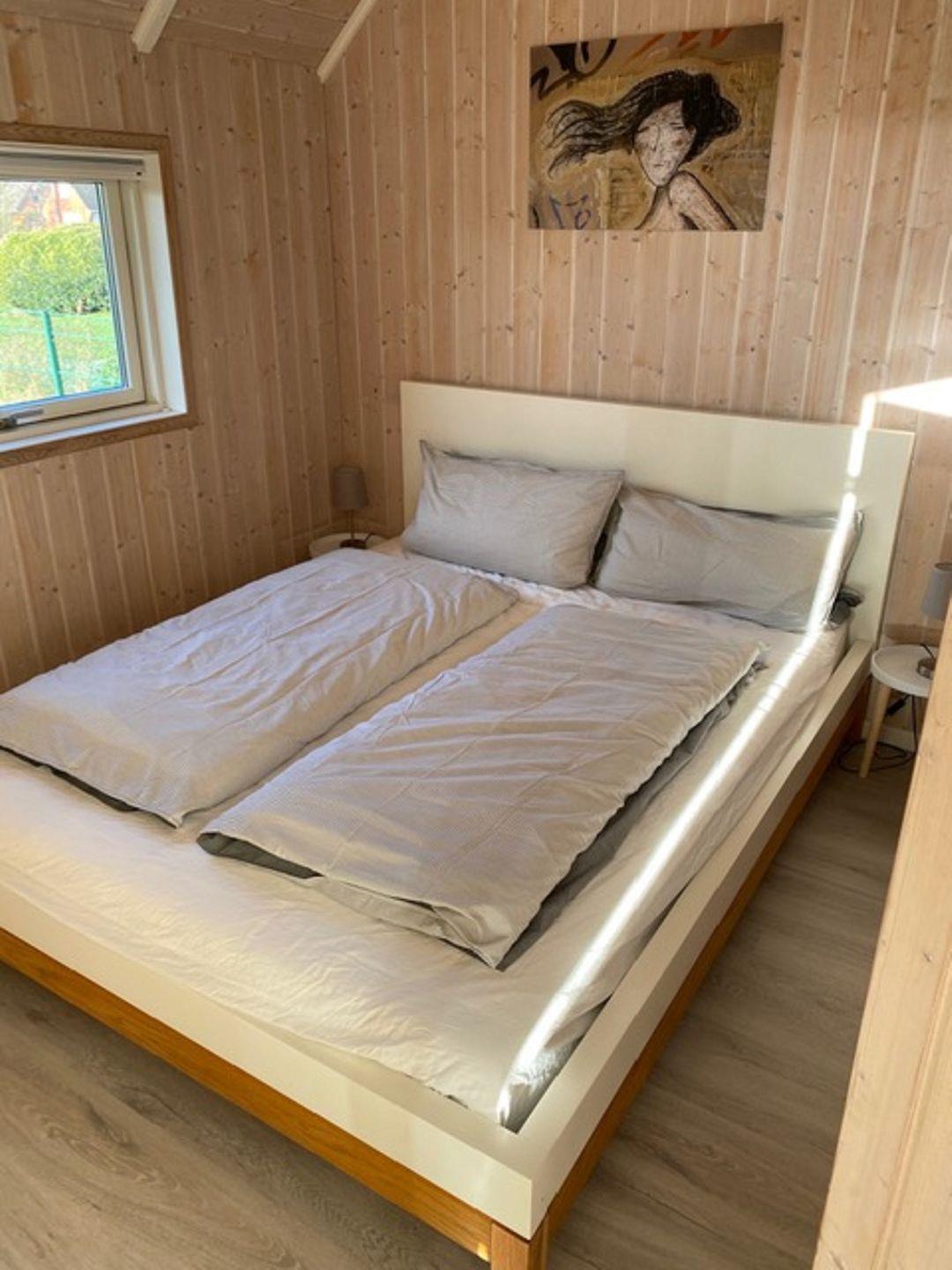 Das Ferienhaus verfügt über zwei gemütliche Schlafzimmer im Erdgeschoss. Im ersten Schlafzimmer erwartet Sie ein komfortables Doppelbett mit Verdunklungsrollos, während das zweite Schlafzimmer ein Etagenbett bietet, ideal für Kinder. Ein Kinderreisebett steht Ihnen ebenfalls kostenlos zur Verfügung.