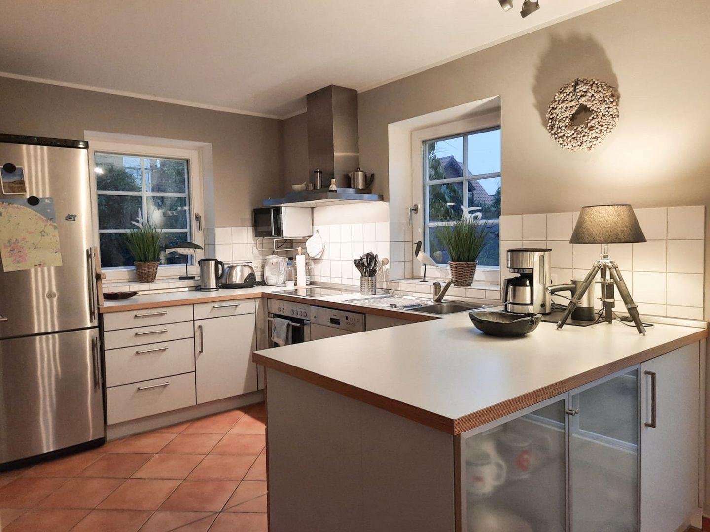 Küche: komplett eingerichtete Einbauküche, Mikrowelle, Toaster, Ceran-Kochfeld, Kaffeemaschine, Milchschäumer, Geschirrspüler, Kühlschrank mit Gefrierfach, Backofen, Wasserkocher, Soda Stream, Mixer