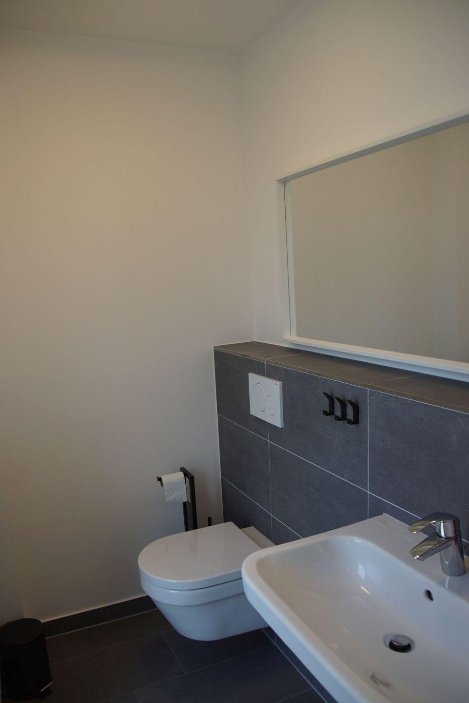 Das Badezimmer im Obergeschoss bietet eine erfrischende Dusche, ein WC und ein Waschbecken. Hier können Sie sich nach einem erlebnisreichen Tag entspannen und erfrischen. Zusätzlich gibt es im Erdgeschoss ein Gäste-WC mit WC und Waschbecken.