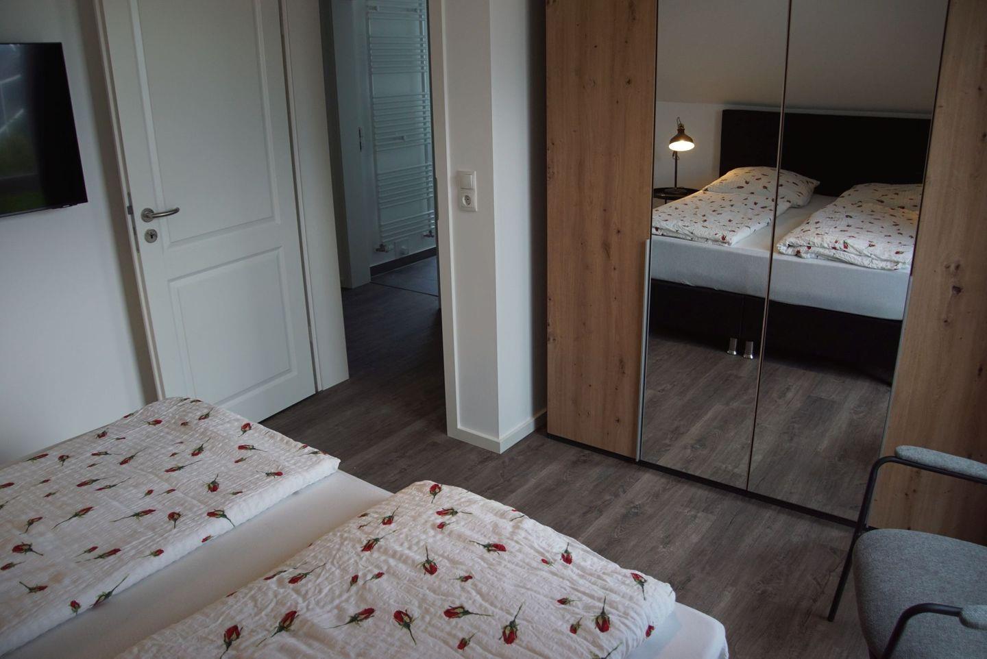 Das Ferienhaus verfügt über insgesamt drei gemütliche Schlafzimmer, die sich alle im Obergeschoss befinden. In jedem Schlafzimmer erwartet Sie ein komfortables Doppelbett mit einer großen Matratze für einen erholsamen Schlaf. Zudem gibt es Kleiderschränke, um Ihre persönlichen Gegenstände ordentlich zu verstauen, und in zwei der Schlafzimmer finden Sie sogar einen Fernseher für Ihre Unterhaltung.