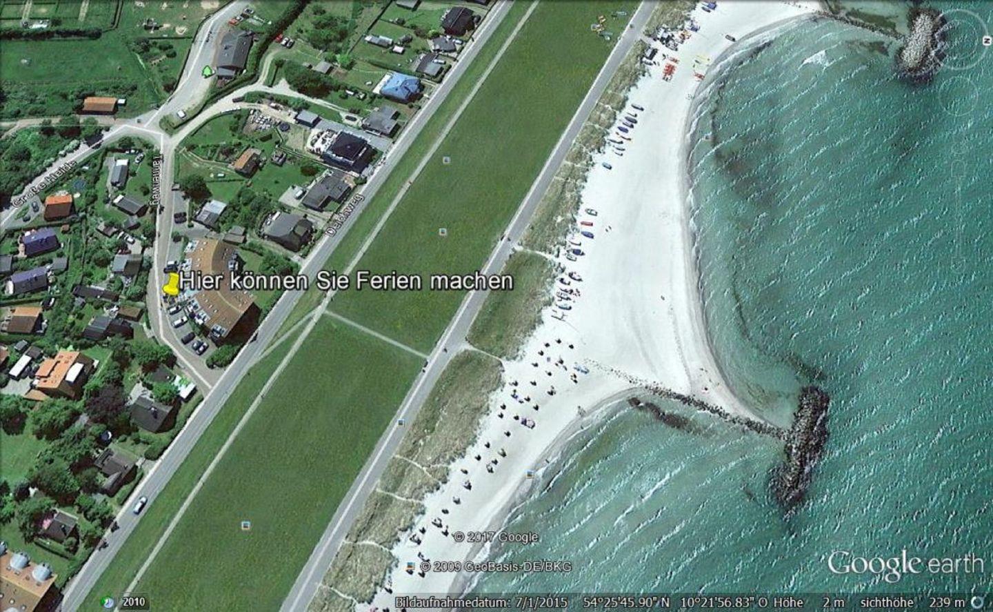 Moderne Ferienwohnung mit seitlichem Meerblick für max. 4 Personen (max. 2 Erwachsene) in Kalifornien. Die Wohnung befindet sich im 2. Stock eines Mehrfamilienhauses direkt hinter dem Deich. Der Strand und die Ostsee sind nur ca. 50 m entfernt.