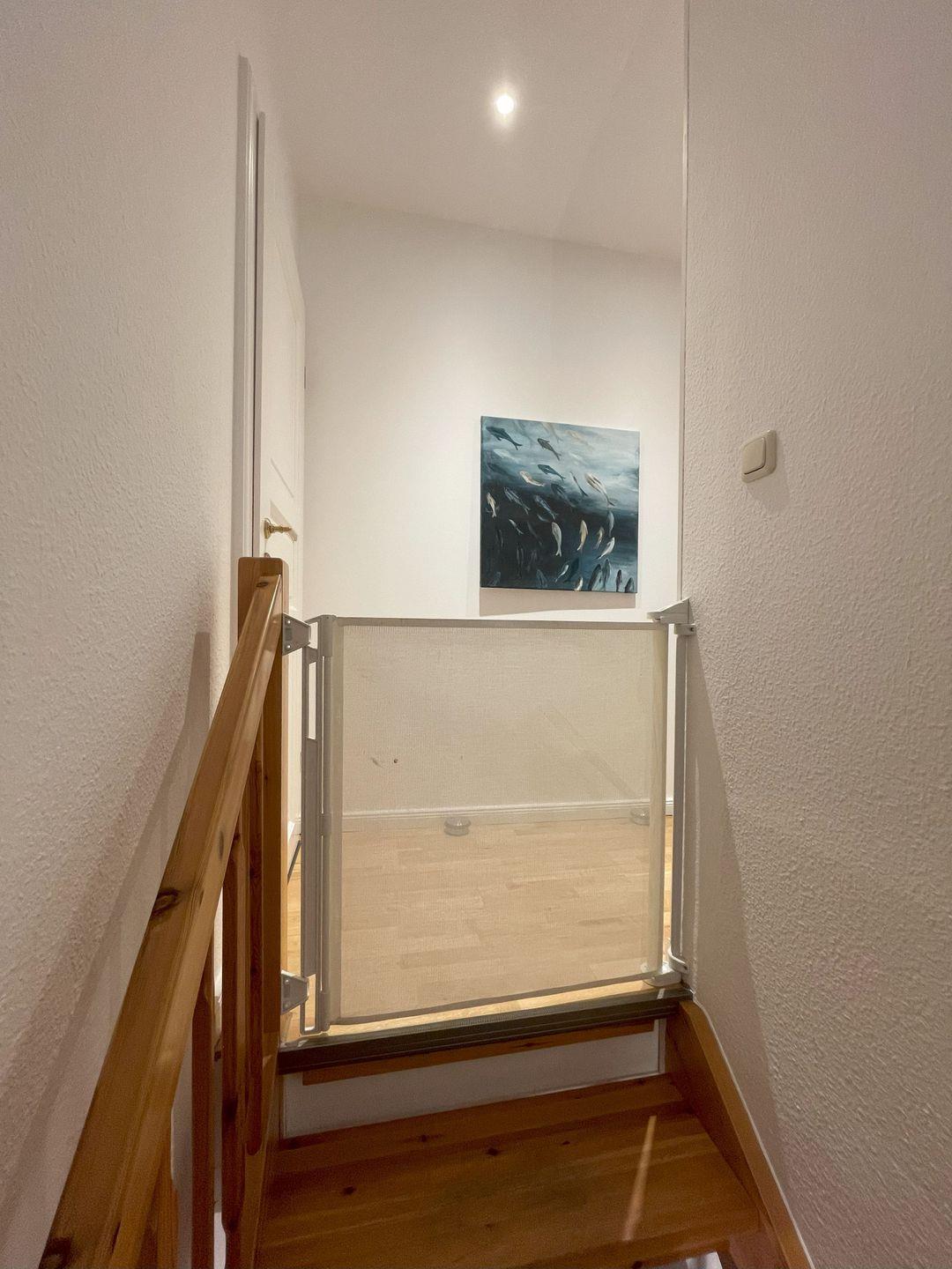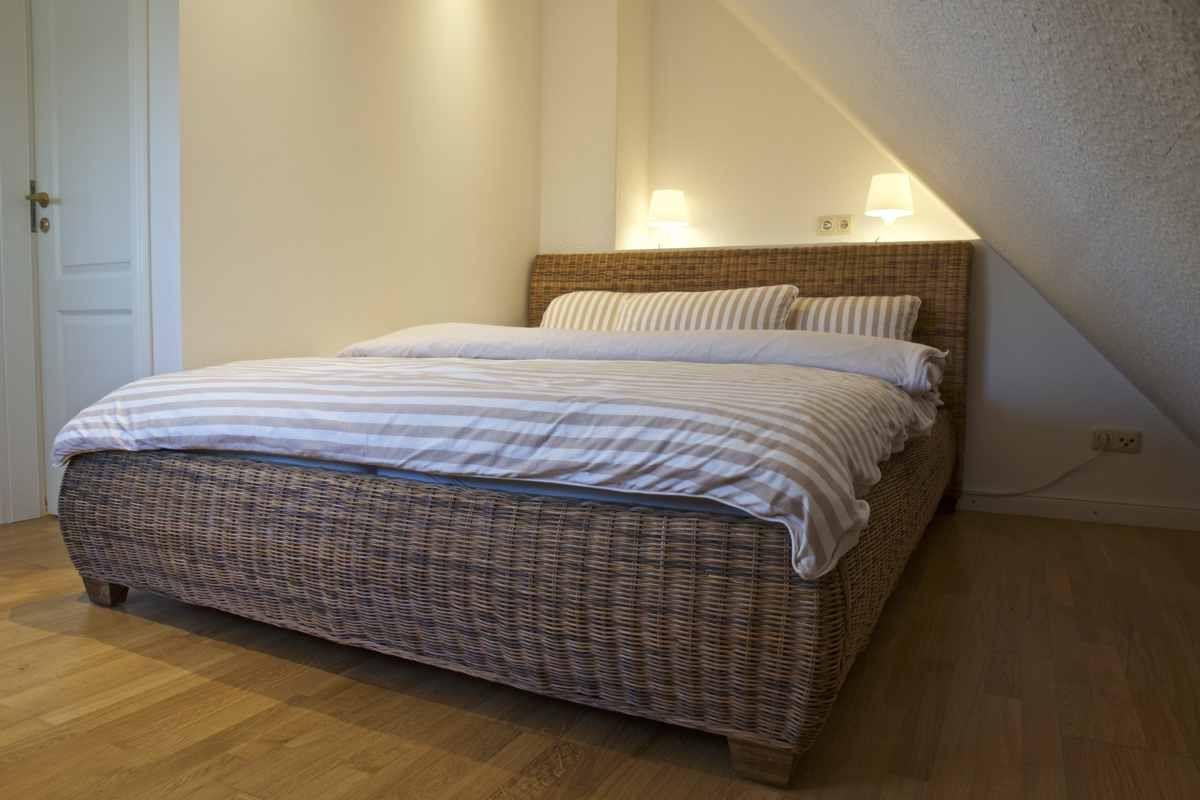 Die Schlafzimmer bieten Ihnen absolute Gemütlichkeit. Das erste Schlafzimmer im Obergeschoss verfügt über ein großes Doppelbett mit zwei "Emma-One"-Testsieger-Matratzen und einen geräumigen Einbaukleiderschrank. Im zweiten Schlafzimmer im Obergeschoss finden Sie ein weiteres komfortables Doppelbett mit denselben hochwertigen Matratzen und eine praktische Kommode. Im gemütlichen Wintergarten befindet sich eine bequeme 2-Personen-Schlafcouch, falls Sie zusätzlichen Platz benötigen. Ein Kleiderschrank steht ebenfalls zur Verfügung.