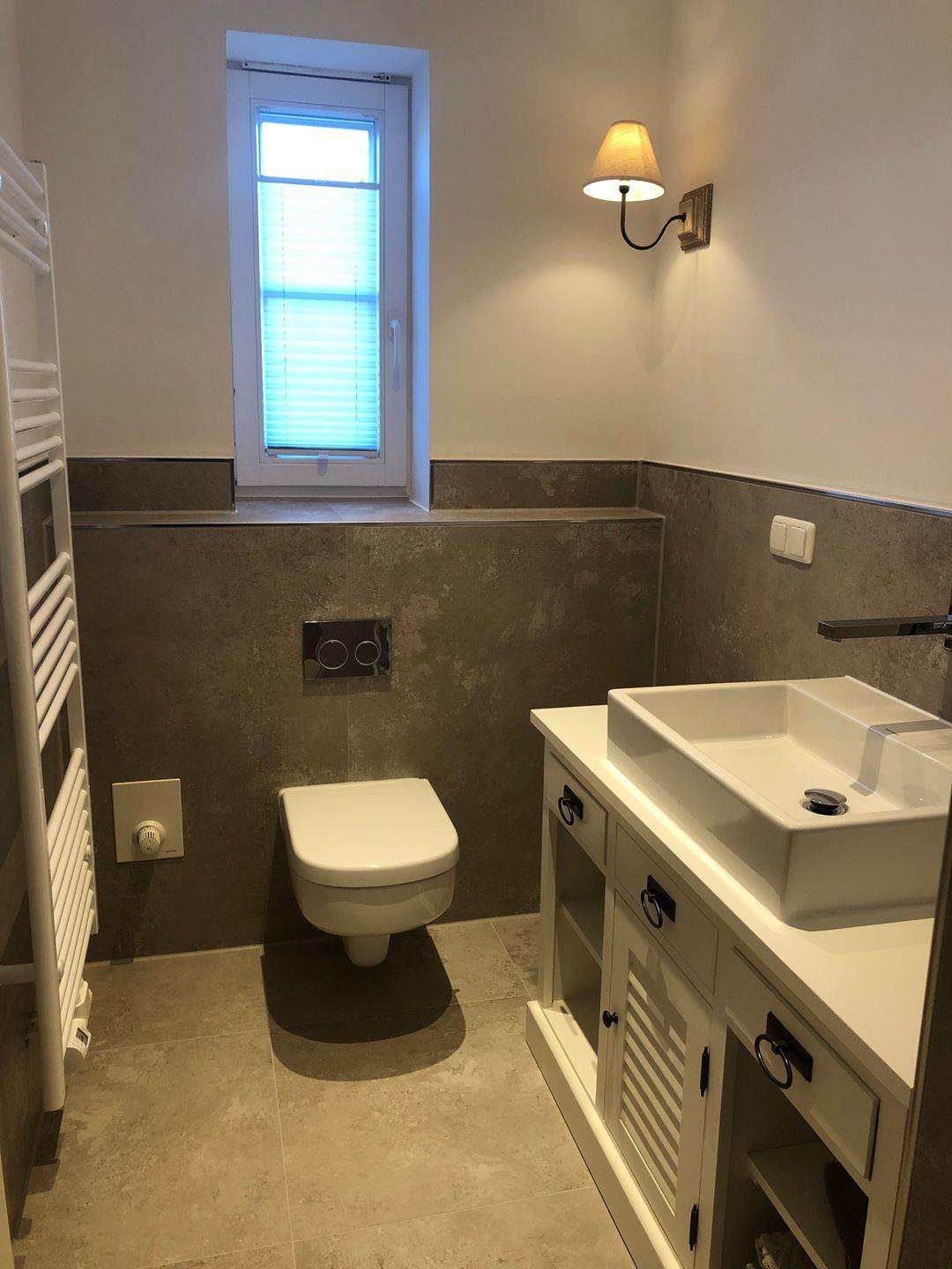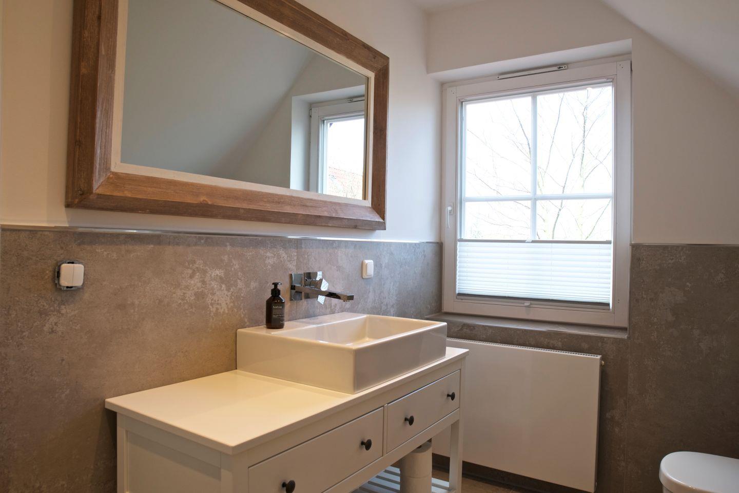 Die Badezimmer sind sowohl funktional als auch ästhetisch ansprechend gestaltet. Im Badezimmer im Obergeschoss erwartet Sie eine einladende Badewanne, ein WC, ein Waschbecken. Im Badezimmer im Erdgeschoss steht Ihnen eine erfrischende Dusche, ein WC, ein Waschbecken und ein Fön zur Verfügung.