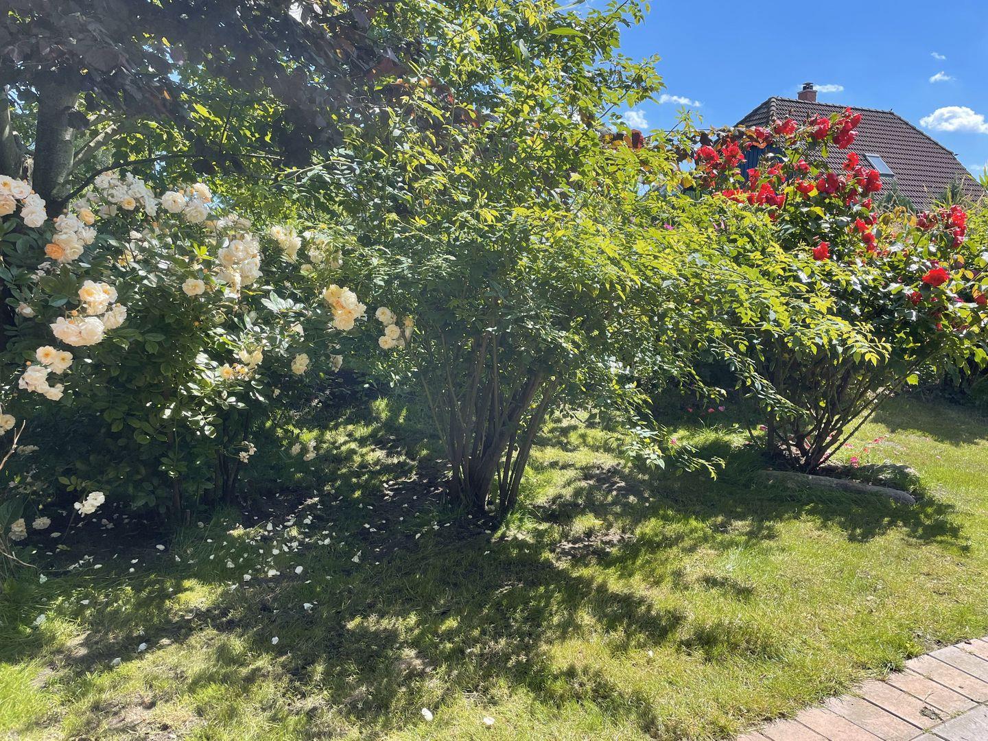 Die Außenausstattung ist einfach großartig. Sie werden die geräumige Sonnenterrasse lieben, auf der Sie die warme Sonne genießen und die frische Luft einatmen können. Eine gepflegte Rasenfläche und bequeme Gartenmöbel laden zum Entspannen ein. Zwei Liegestühle und ein Sonnenschirm stehen bereit, um Ihnen den perfekten Platz zum Relaxen zu bieten. Der gepflegte Blumengarten verzaubert mit seiner Pracht und Schönheit. Und das Beste ist, dass Sie Ihren PKW direkt am Haus parken können - bequem und sicher.