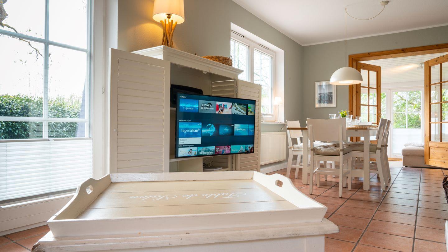 Damit Sie auch während Ihres Urlaubs mit der Außenwelt verbunden bleiben können, bieten wir Ihnen WLAN mit einem superschnellen Glasfaseranschluss (1 Gbit/s.). Für Ihre Unterhaltung gibt es einen LED-Smart-TV mit SAT-Empfang, eine Marshall Acton 3 Bluetooth-Box, einen CD- und DVD-Player sowie eine Infrarotsauna für entspannte Wellnessmomente.