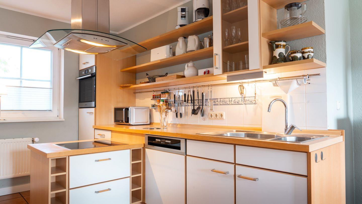 Die Küche ist komplett ausgestattet und lässt keine Wünsche offen. Ein Induktions-Kochfeld mit Dunstabzugshaube, ein Umluftbackofen, ein Geschirrspüler, ein Kühlschrank, ein Gefrierschrank, eine Mikrowelle, ein Wasserkocher, eine Kaffeemaschine, ein Toaster, ein Eierkocher und sogar ein Mixer stehen für Ihre kulinarischen Abenteuer bereit. Falls Sie morgens einen schnellen Koffeinkick benötigen, steht Ihnen auch eine Pad-Maschine zur Verfügung.