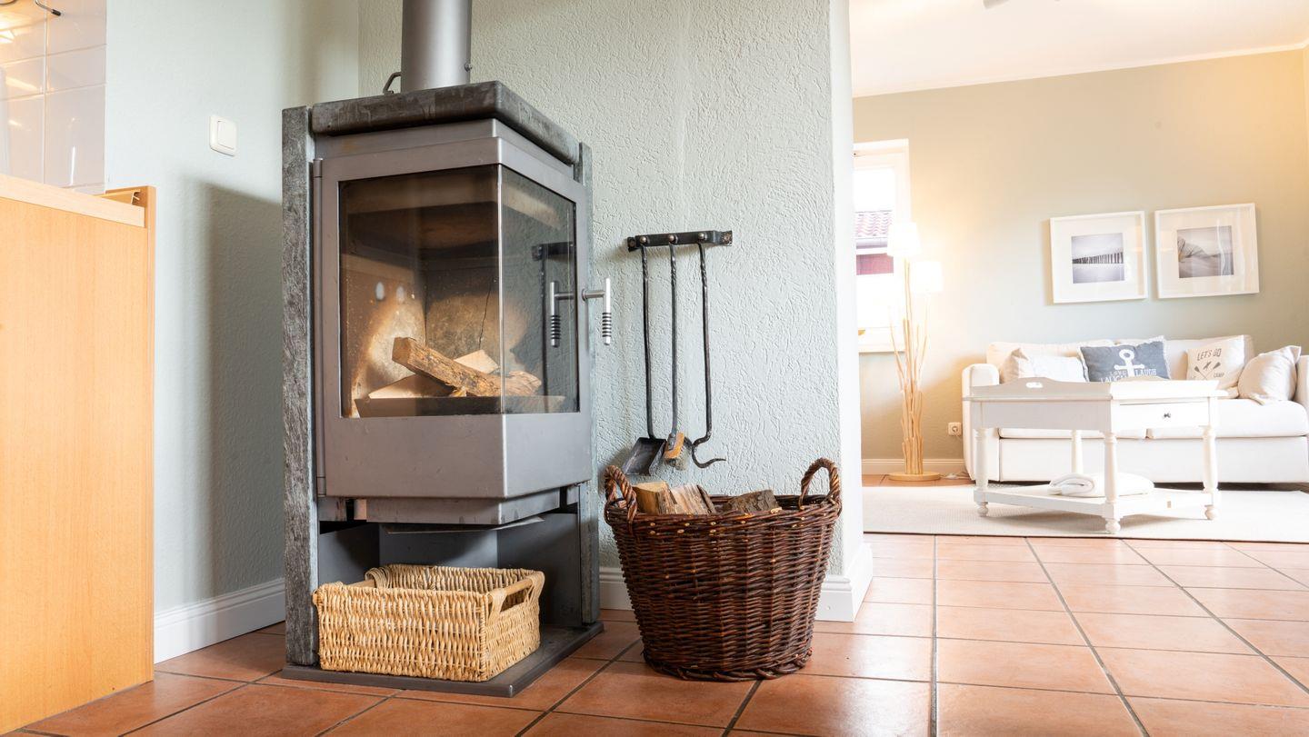 Kaminholz während der kalten Jahreszeit, sofern vorhanden.