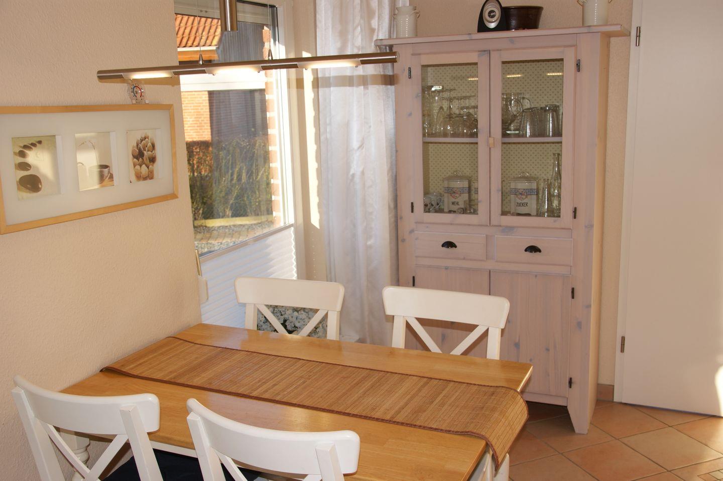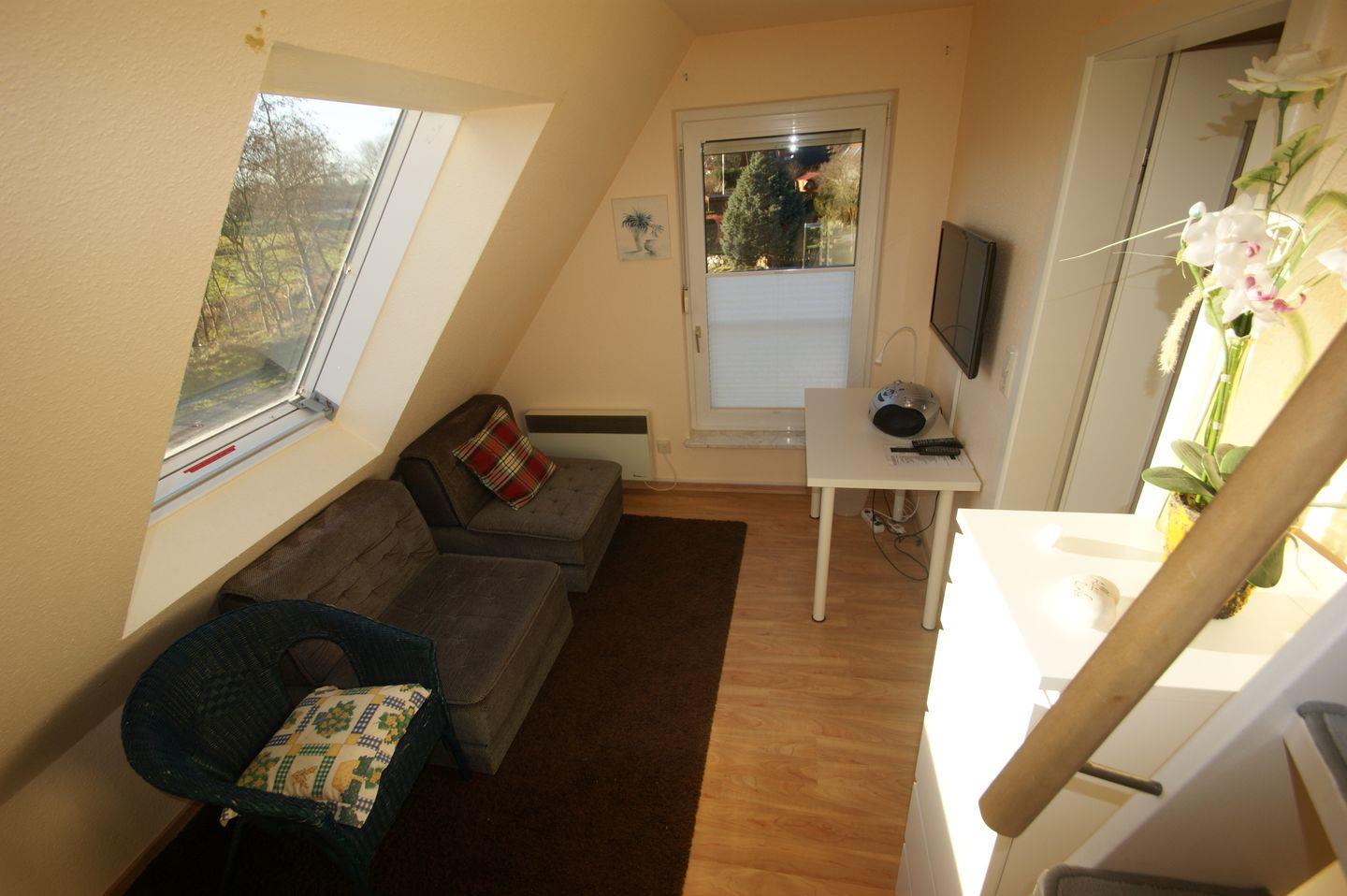 Das Wohnzimmer lädt mit einer komfortablen Sitzgruppe zum Entspannen ein. Der Flachbildfernseher und die Stereoanlage mit CD sorgen für Unterhaltung. In der Essecke können Sie gemeinsame Mahlzeiten genießen und den Tag Revue passieren lassen.