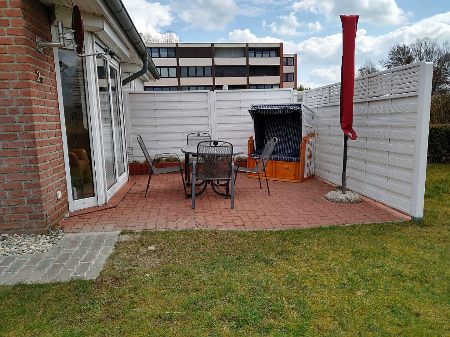 Strandnahe Doppelhaushälfte für max. 4 Personen in Schönberg-Kalifornien. Das Grundstück ist ca. 380 m² groß und verfügt über eine Rasenfläche sowie eine Terrasse. Das Auto kann in dem dazugehörigen Carport untergestellt werden.