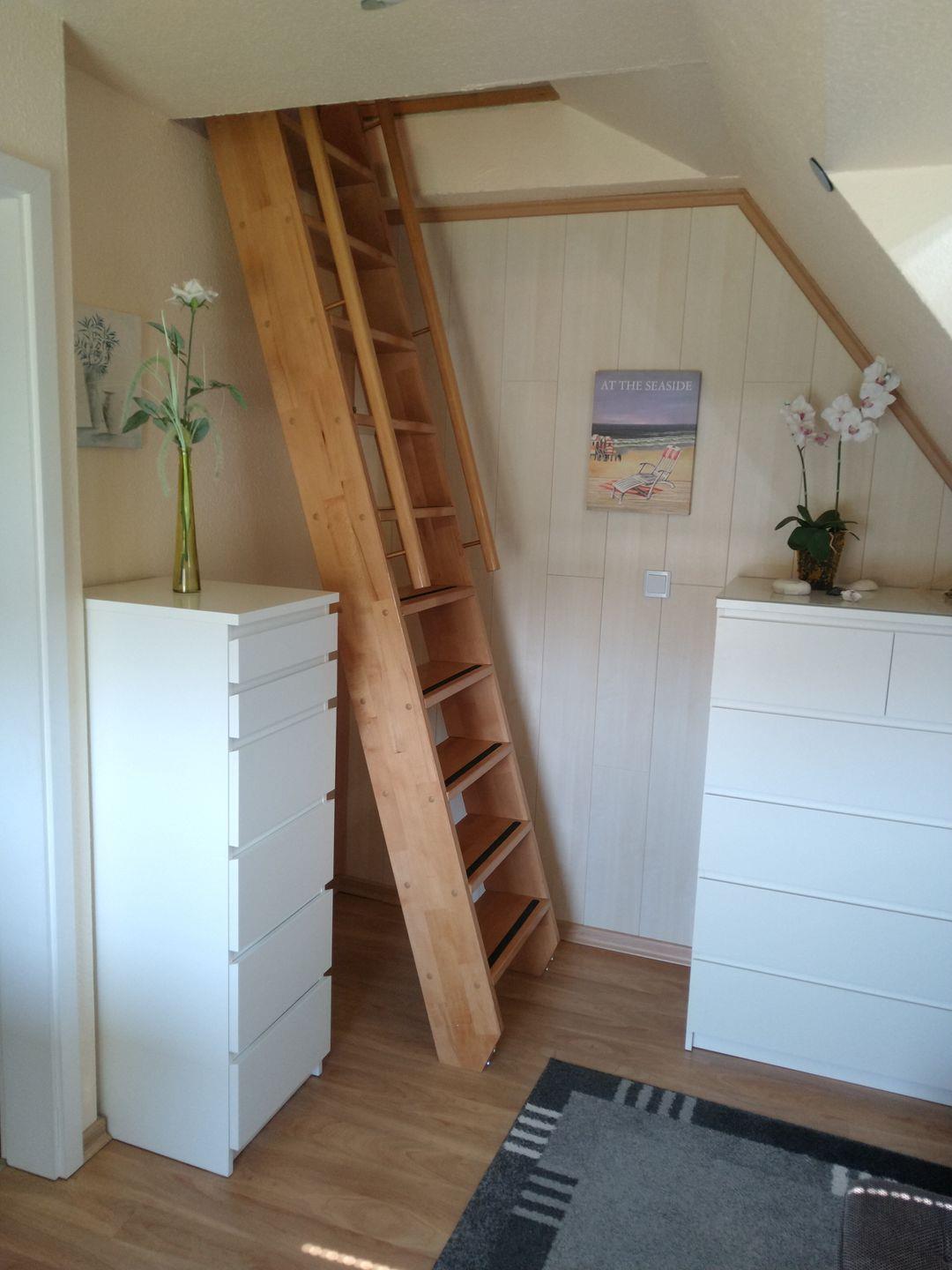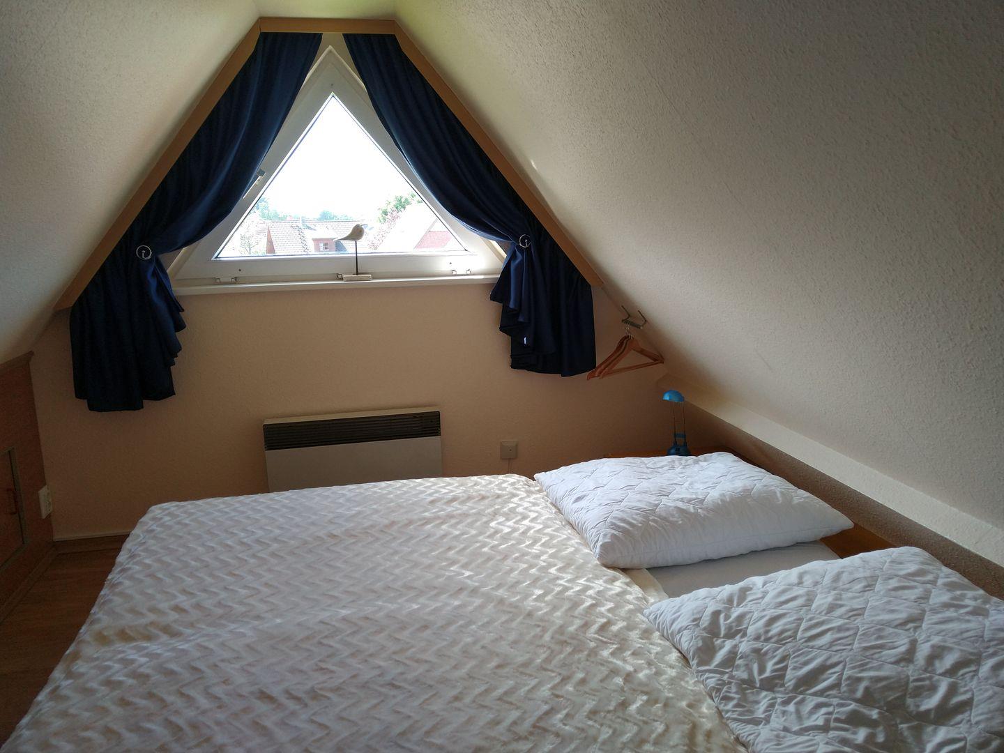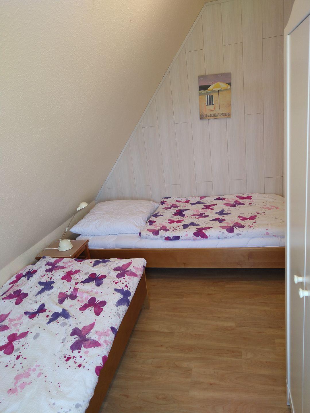 Die Schlafzimmer sind gemütlich gestaltet und bieten Ihnen eine erholsame Nachtruhe. Im ersten Schlafzimmer im Obergeschoss finden Sie zwei Einzelbetten und können in den Außenjalousien eine angenehme Dunkelheit genießen. Das zweite Schlafzimmer im Dachgeschoss erreichen Sie über eine etwas steilere Treppe durch das Durchgangszimmer. Hier erwartet Sie ein komfortables Doppelbett, in dem Sie tief und fest schlafen können. Im Durchgangszimmer im Obergeschoss befinden sich zwei Schlafsessel, die zusätzliche Schlafmöglichkeiten bieten. Ein weiterer Flachbildfernseher steht Ihnen hier zur Verfügung.