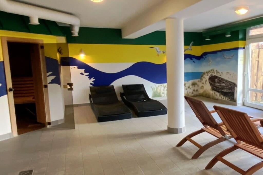Den fremragende udstyrede lejlighed byder på mange faciliteter såsom: balkon med udsigt over det grønne, privat strandstol på stranden (i sæsonen), damp- og infrarød sauna, fitnessrum med bordtennisbord, nyt udstyret køkken med ovn og keramisk kogeplade, opvaskemaskine, WiFi, kaffemaskine, Nespresso-maskine, komfortabel boxmadrasser 1,80m x 2,00m. Det velholdte brusebad har vindue, toilet og bidet. Prisen inkluderer sengetøj med redte senge og håndklæder. Vaskemaskine og tørretumbler i huset kan benyttes mod betaling. Den private parkeringsplads ligger lige foran lejlighederne. Særlige funktioner Balkon med hyggelige møbler, separat lejlighed indgang! Badeværelse med vindue, ny indretning og tekøkken, ny boxmadras, Nespresso-maskine. Møntbetjent vaskemaskine og tørretumbler i huset, finsk og infrarød sauna, fitnessrum, privat strandstol på hovedstranden i sæsonen.