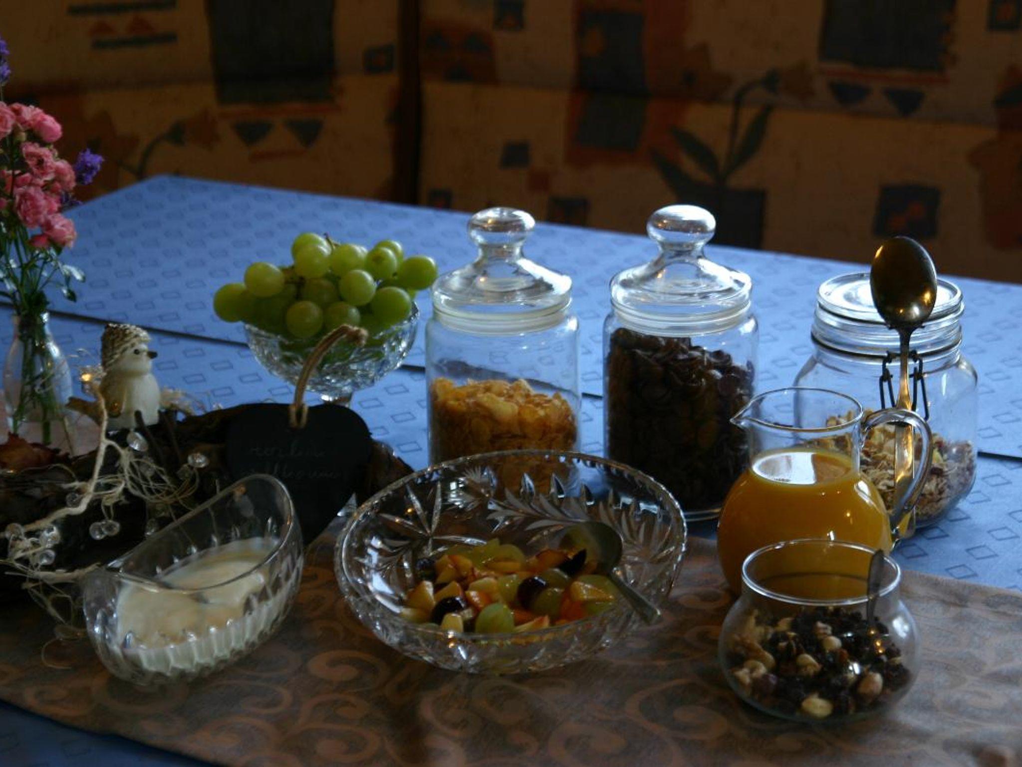 Bei einem reichhaltigem Frühstück (Müsli, Saft,frischer Obstsalat ect.) beginnen Sie Ihren Urlaubstag. Außerdem steht unseren Gästen ein Gästekühlschrank, Brotzeitgeschirr, Kaffemaschine und Wasserkocher zur Verfügung. In unserem ruhigen Garten könne Sie faulenzen und entspannen. Auch ein Holzkohlegrill und Liegestühle stehen für Sie bereit.