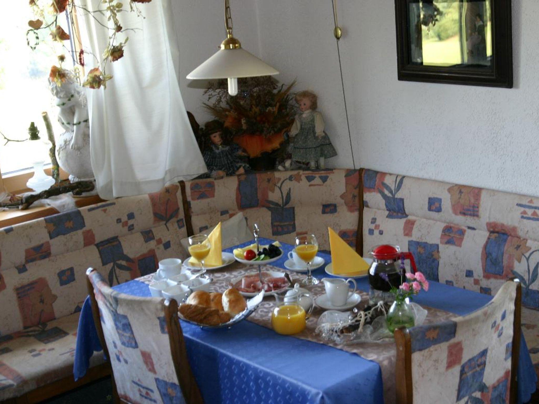 Bei einem reichhaltigem Frühstück (Müsli, Saft,frischer Obstsalat ect.) beginnen Sie Ihren Urlaubstag. Außerdem steht unseren Gästen ein Gästekühlschrank, Brotzeitgeschirr, Kaffemaschine und Wasserkocher zur Verfügung. In unserem ruhigen Garten könne Sie faulenzen und entspannen. Auch ein Holzkohlegrill und Liegestühle stehen für Sie bereit.