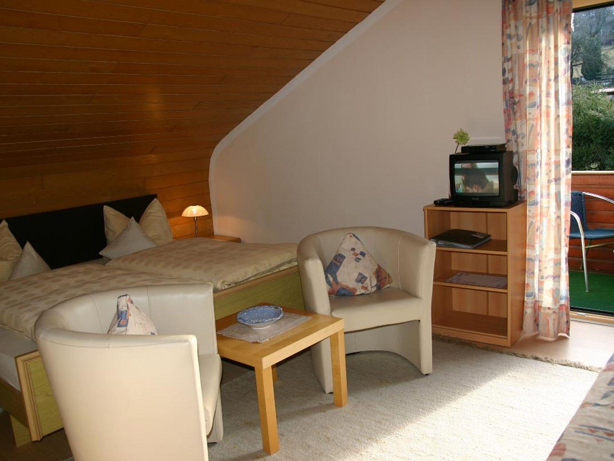 Großzügiges 20qm Doppelzimmer mit Balkon und Schlafcouch. Fernseher, Radio und WLAN sind vorhanden.