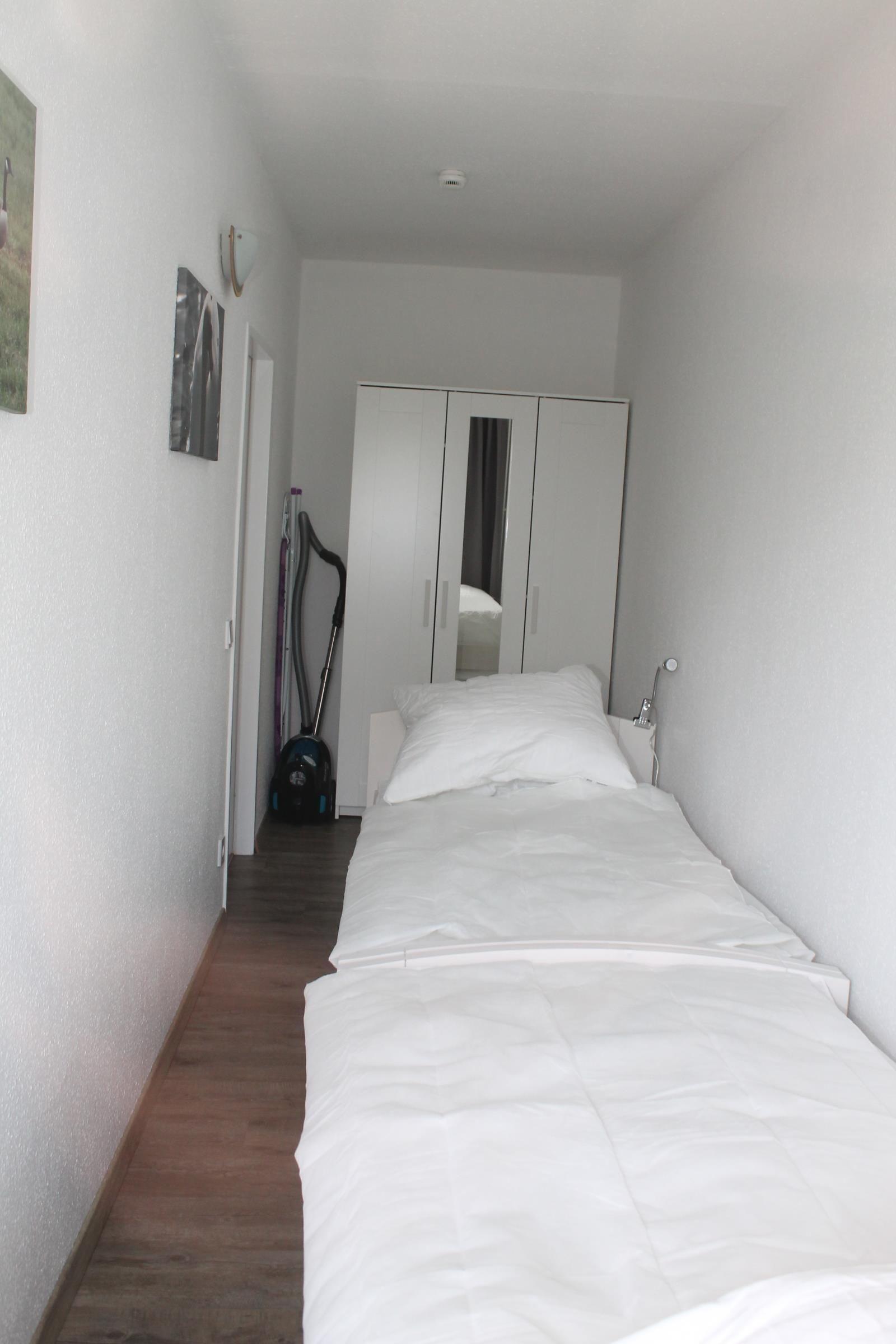 Der moderne Komfort der Wohnung setzt sich im separaten Schlafzimmer fort. Mit zwei Einzelbetten ist es beispielsweise für mitreisende Kinder der ideale Rückzugsort.