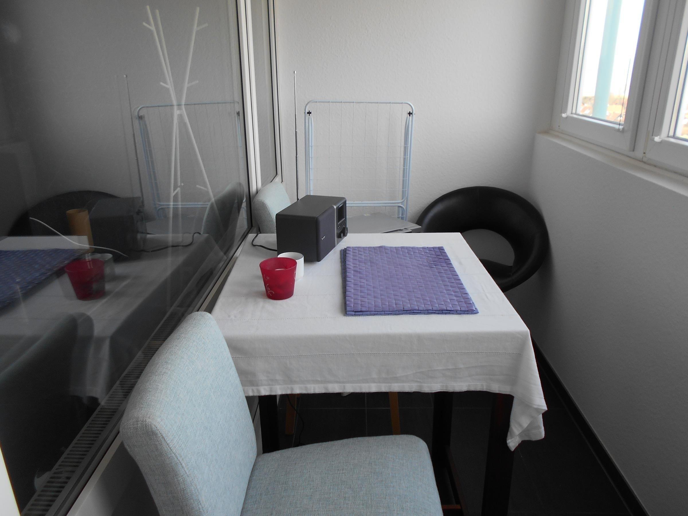 Die möblierte verglaste Loggia bietet bei jedem Wetter und zu jeder Jahreszeit einen sensationellen Blick über die Ostsee. Ein großes Schlafsofa bietet Platz für max. 2 Personen. Die einladende Essecke laden zu gemütlichem Verweilen ein.