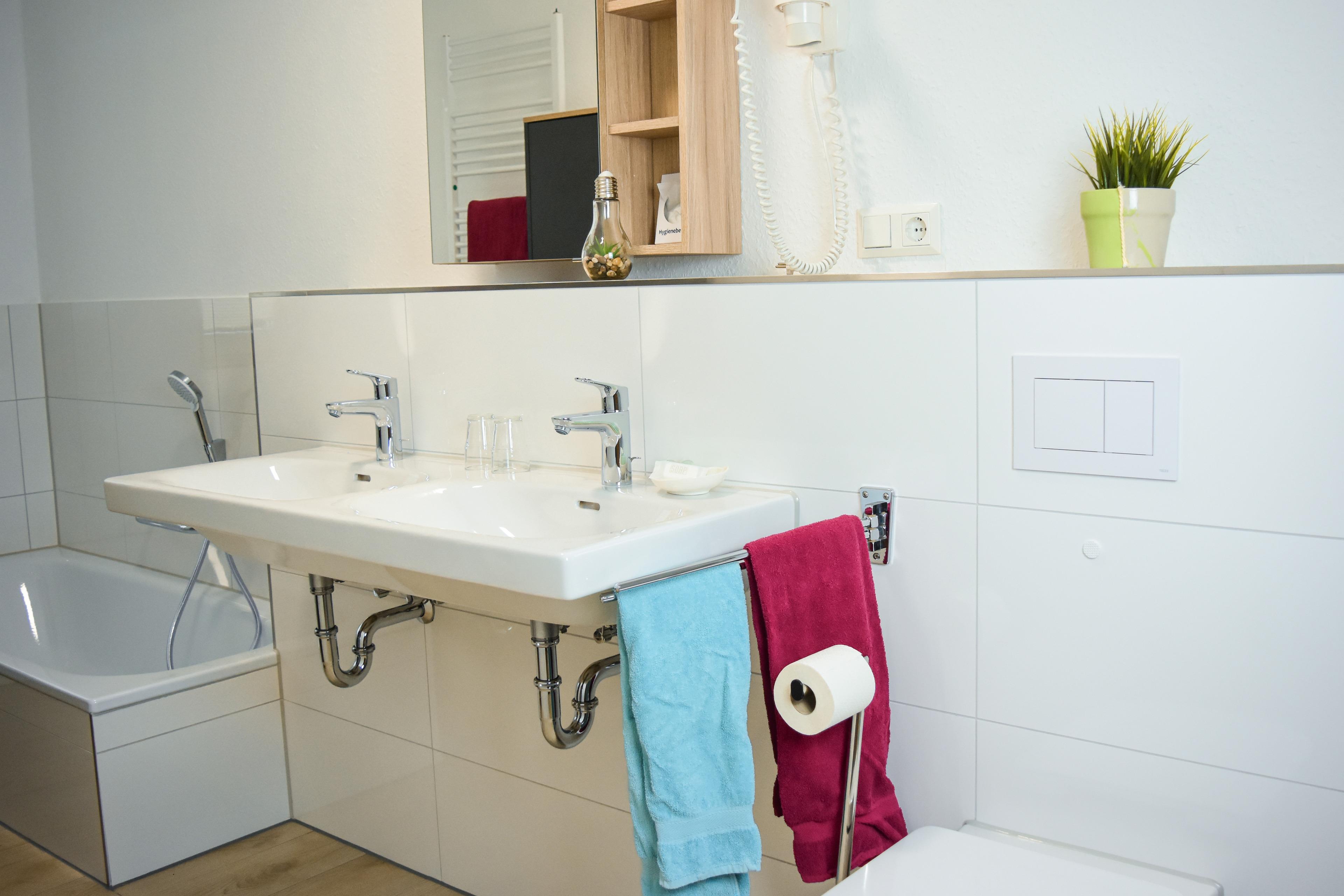 -Frühstücksbuffet kann täglich bis 18 Uhr dazugebucht werden und befindet sich im Haupthaus (Hotel)