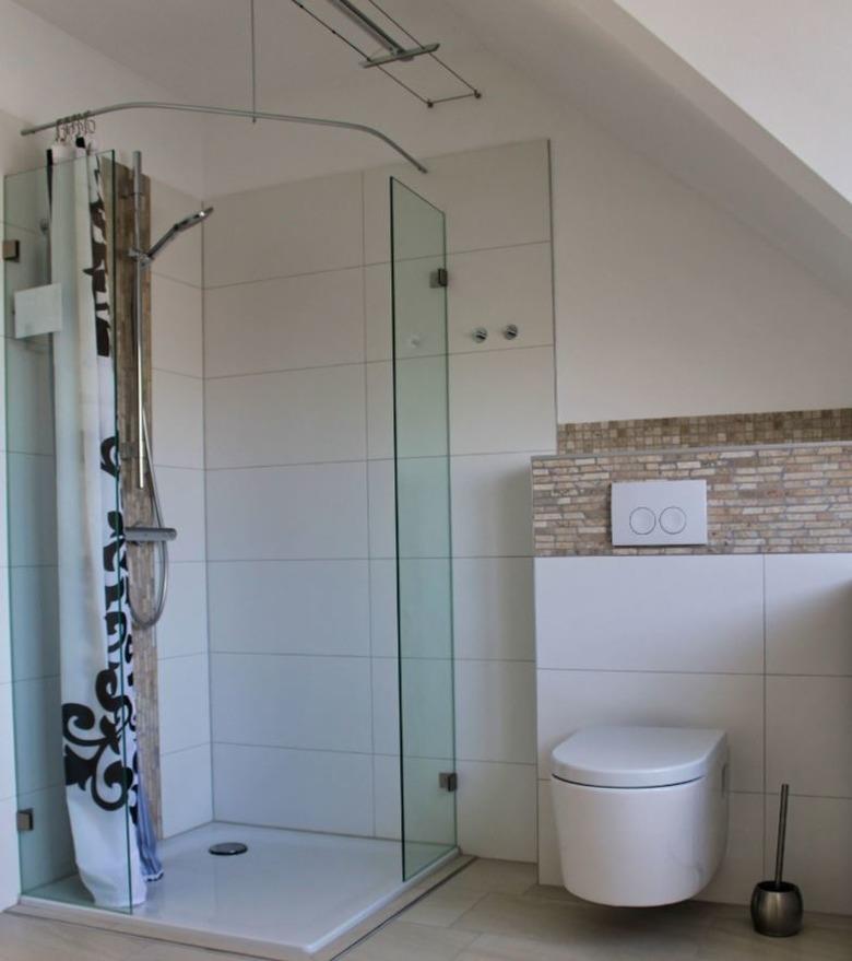 Im modernen Bad spülen Dusche (ebenerdig) und Badewanne Sand und Salz von der Haut.