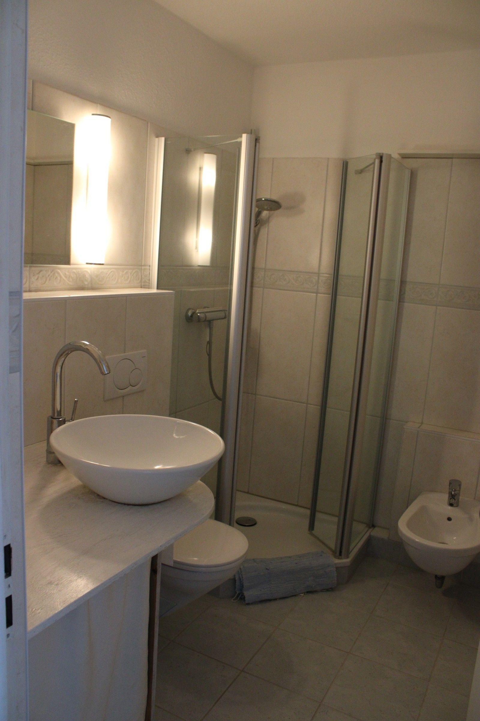 Die Küche ist komplett ausgestattet und bietet alles, was unsere Gäste zur Selbstversorgung benötigen. Das Bad ist mit Dusche ausgestattet. Der möblierte Balkon mit seiner traumhaften Aussicht vermittelt zu jeder Tageszeit Urlausbfeeling pur.