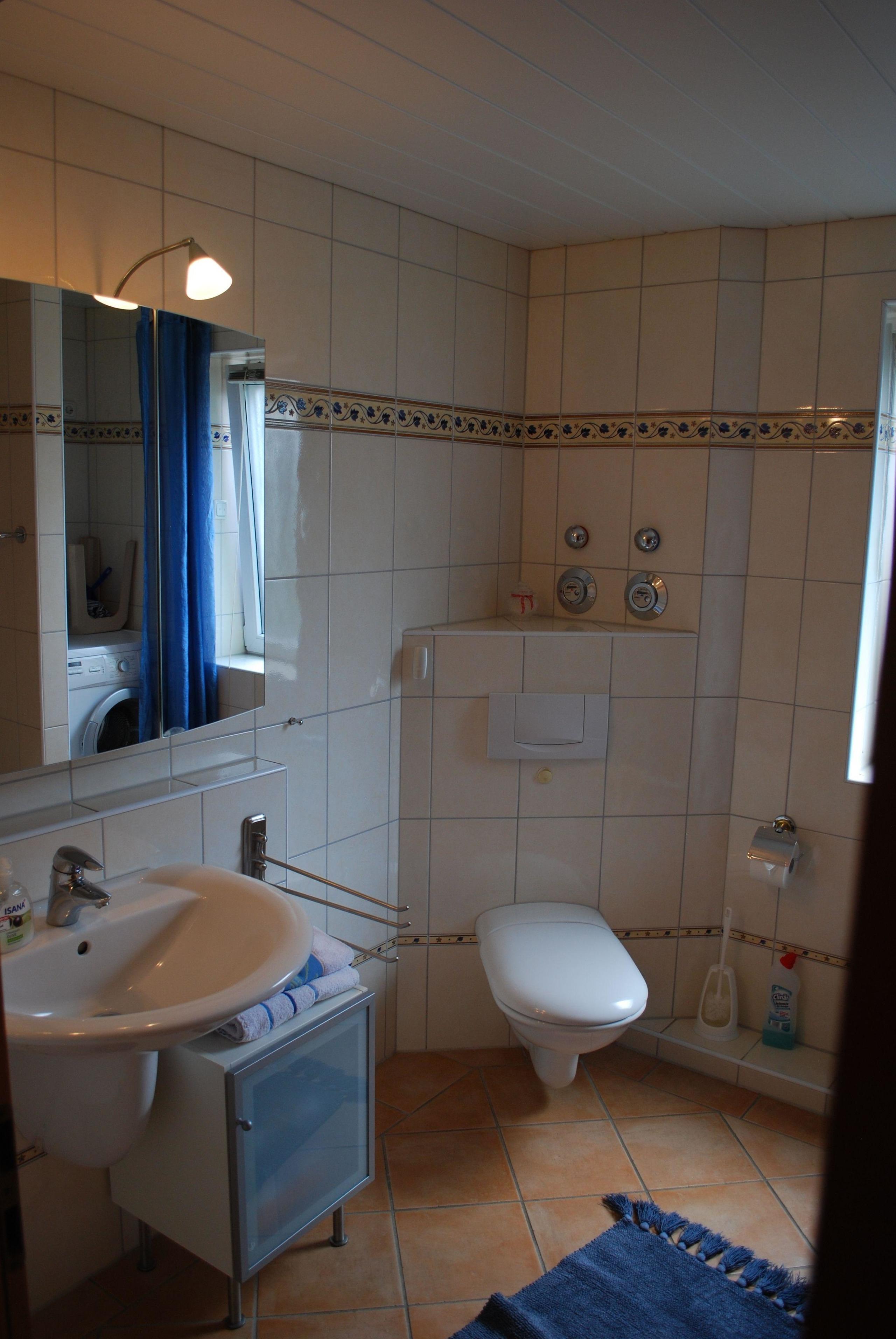 Im geräumigem Bad mit Außenfenster erwartet Sie ein Wannenbad. Außerdem ist das Bad mit einer Waschmaschine ausgestattet.