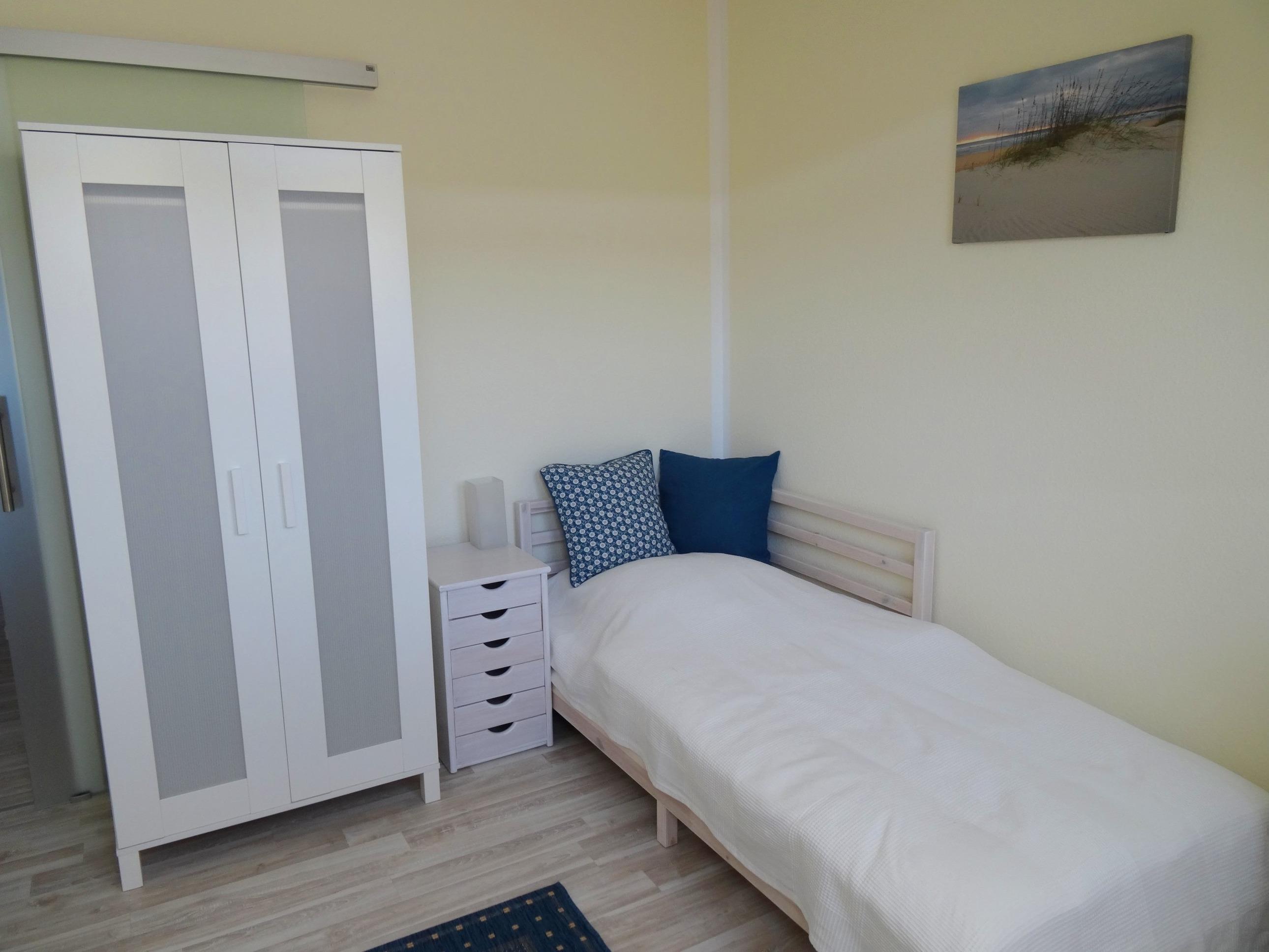Liebevoll renoviertes (2018), helles Ferienapartment im 2. OG. über zwei Ebenen mit Meerblick, nur ca. 50 m vom Strand entfernt. Das großzügige lichtvolle Schlafzimmer im Dachgeschoss ist über eine steile Wohntreppe erreichbar. Der sonnige Balkon befindet sich auf der Südseite. Auch hier ist durch den geschaffenen offenen Wohnraum ein Blick auf die Ostsee möglich.