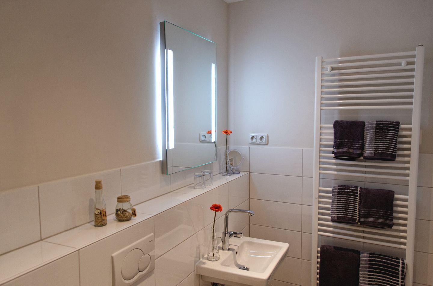Die Wohnung verfügt über ein komfortables Schlafzimmer, in dem Sie erholsame Nächte verbringen können. Für Ihr Wohlbefinden sorgt ein modernes Badezimmer mit bodengleicher Dusche, das nach einem langen Tag am Strand eine erfrischende Abkühlung bietet. Außerdem sind hochwertige Handtücher und Bettwäsche vorhanden, sodass Sie sich um nichts kümmern müssen.