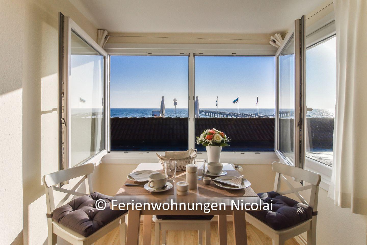 Die Wohnung ist für 2 Erwachsene und eine dritte Person ausgelegt. Die Ferienwohnung hat eine sehr schöne Raumaufteilung mit 2 Loggien. Eine Loggia liegt in Richtung Strand und hat Meerblick, die 2. Logia ist nach Süden ausgerichtet und bietet schönen Sonnenschein. Eine neue, großzügie Einbauküche bietet allen Komfort und ist komplett inkl. Spülmaschine ausgestattet. Die Ferienwohnung hat eine Gesamtwohnfläche von ca. 45qm. In der Nähe befindet sich der Strandabschnitt mit der DLRG-Station und bis zur Seebrücke sind es nur ein paar Meter. Alles ist liebevoll und modern eingerichtet und bei Ihrer Ankunft kann der Urlaub sofort beginnen, denn für die Erstausstattung ist alles vorhanden. Eine schöne, komplett renovierte Ferienwohnung für 3 Personen.