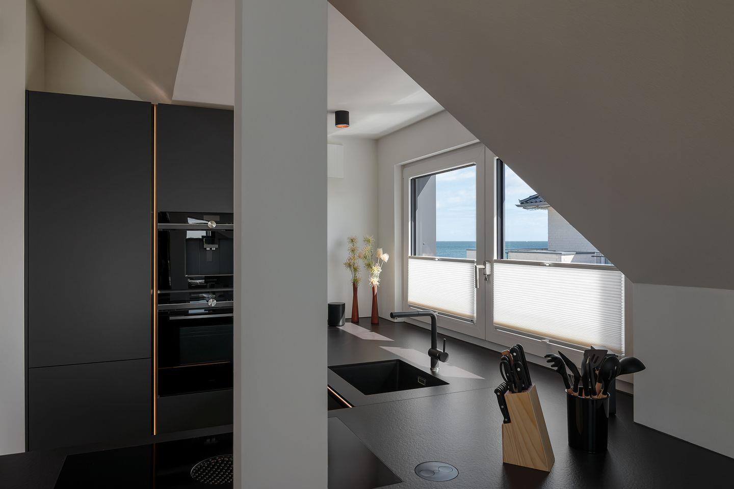 Der offene Zugang zur modernen Küche ermöglicht es Ihnen, Ihre Lieblingsgerichte selbst zuzubereiten. Hier finden Sie alles, was Sie dazu benötigen, einschließlich eines Einkaufsservices, um Ihren Aufenthalt so bequem wie möglich zu gestalten. Ihnen stehen auch ein Weinkühlschrank und hochwertige Küchengeräte zur Verfügung, die höchsten Ansprüchen genügen. Der Kaffeevollautomat ist zur Zubereitung von Kaffee geeignet, der Milchaufschäumer steht Ihnen aus hygienischen Gründen leider nicht zur Verfügung.