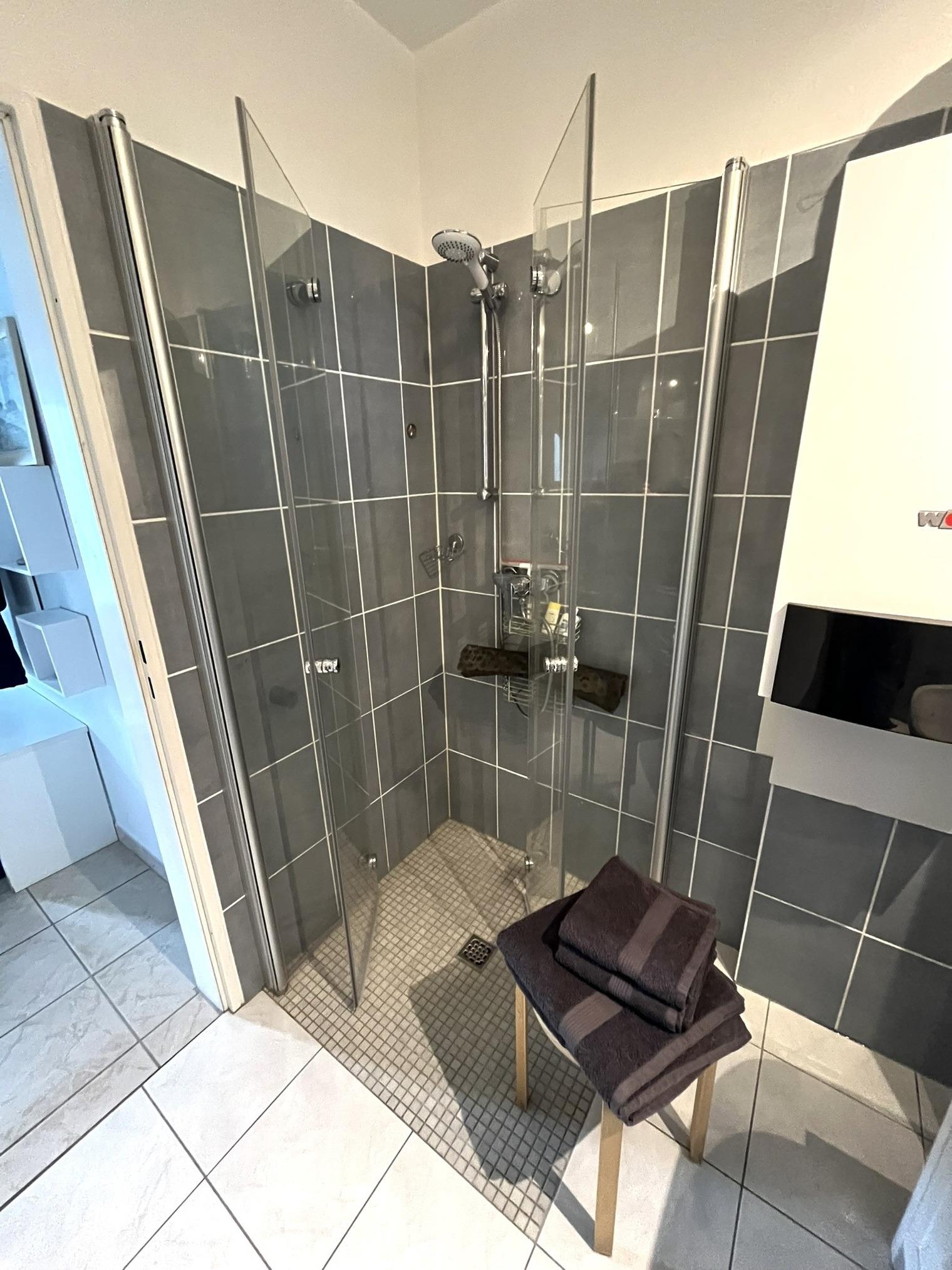 Sehr gerne bieten wir Ihnen dazu unser schönes Appartement an, ca. 300 m vom Strand, maritim und sehr gemütlich eingerichtet, Laminat- und Fliesenböden, barrierefrei, auch die Dusche.