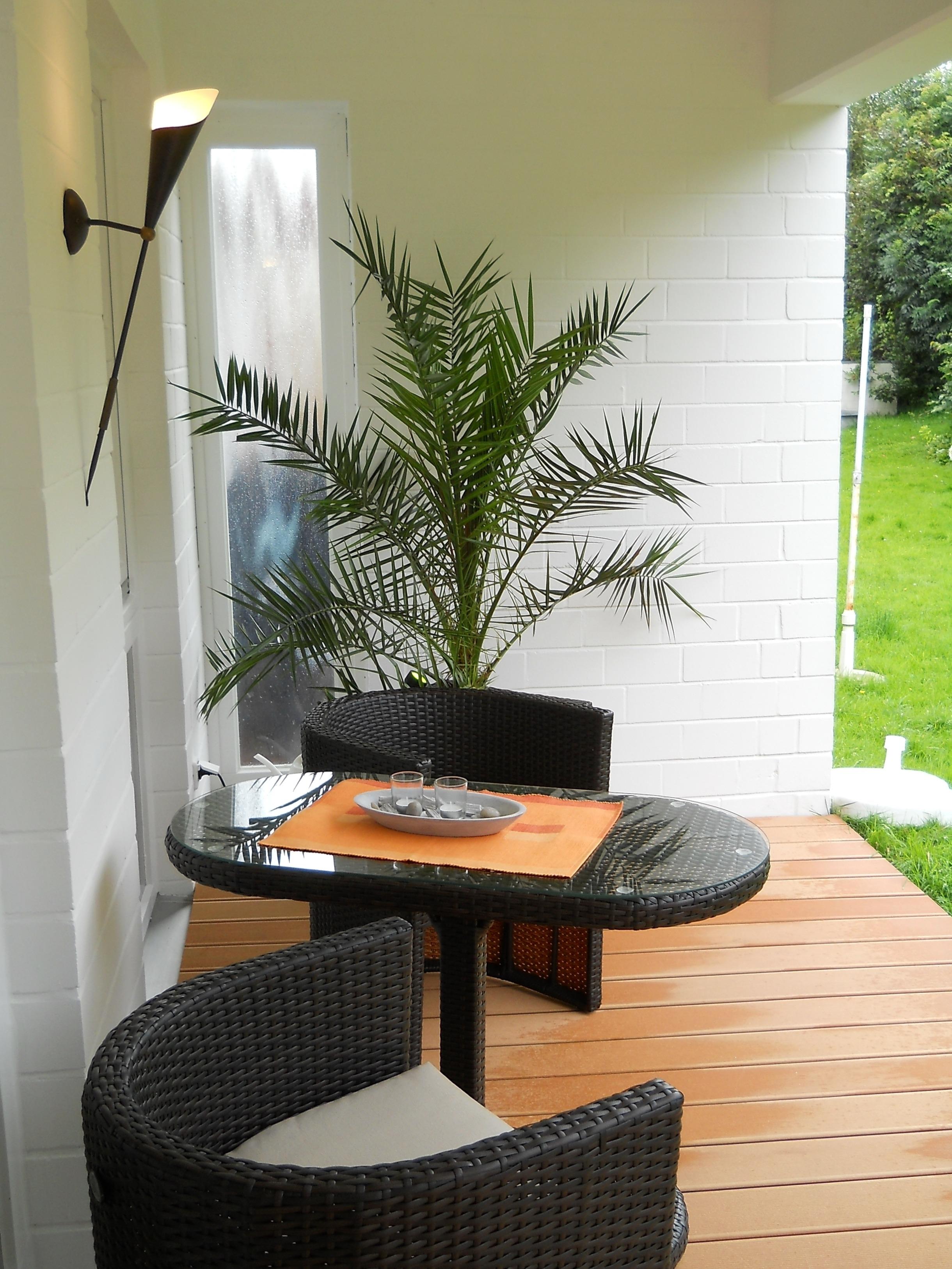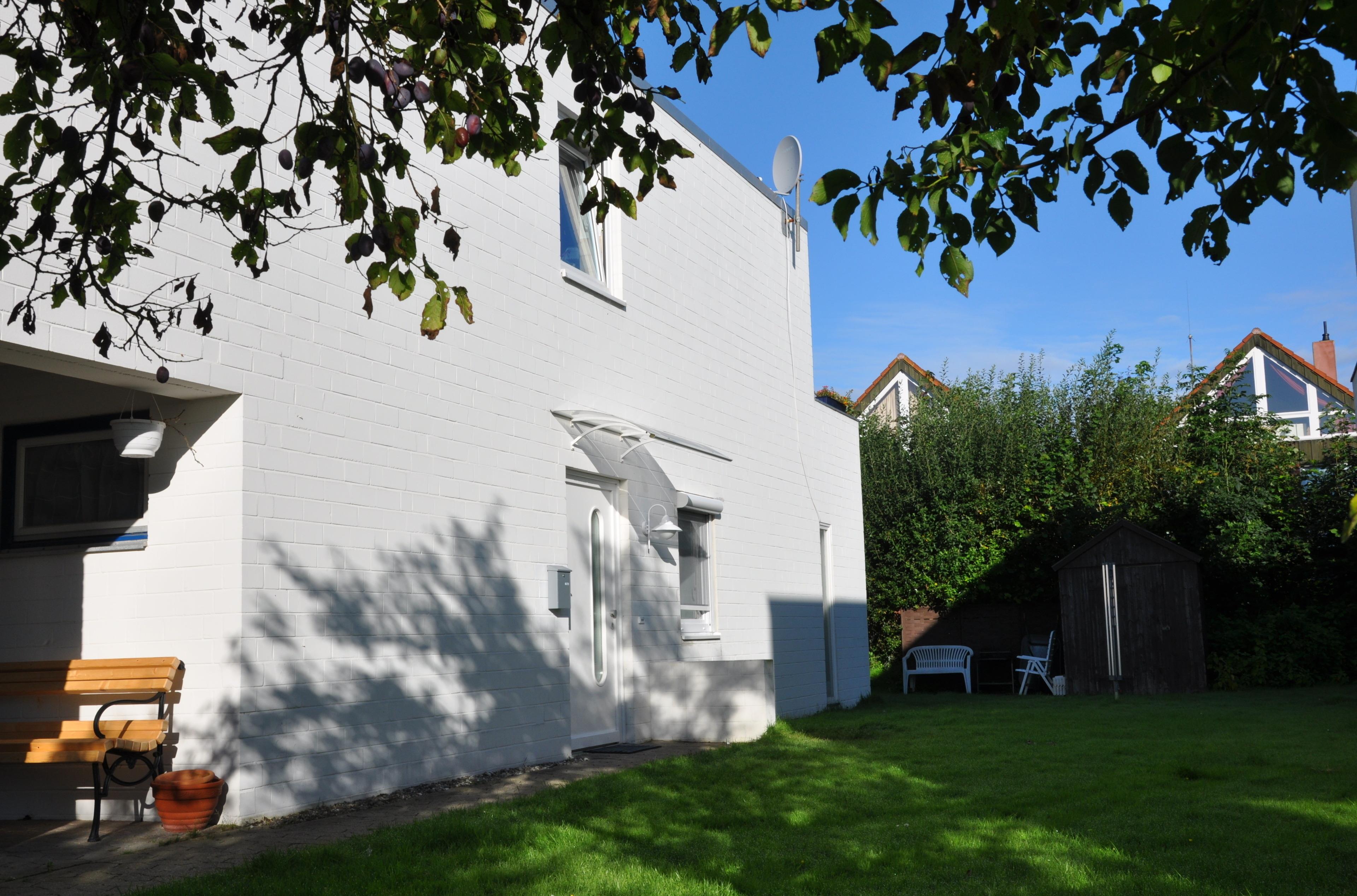 Zum Appartement gehört eine überdachte Terrasse sowie eine Liegewiese. Auf dem Grundstück vor dem Haus liegt der reservierte Parkplatz, für Ihre Fahrräder steht ein abschließbarer Abstellraum zur Verfügung.