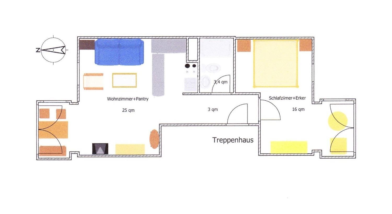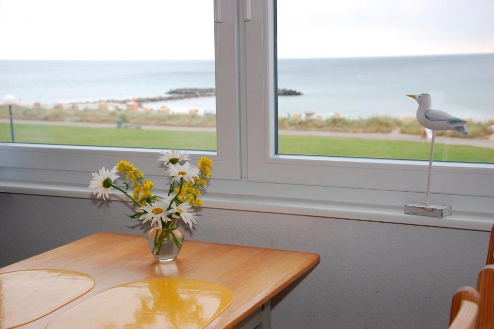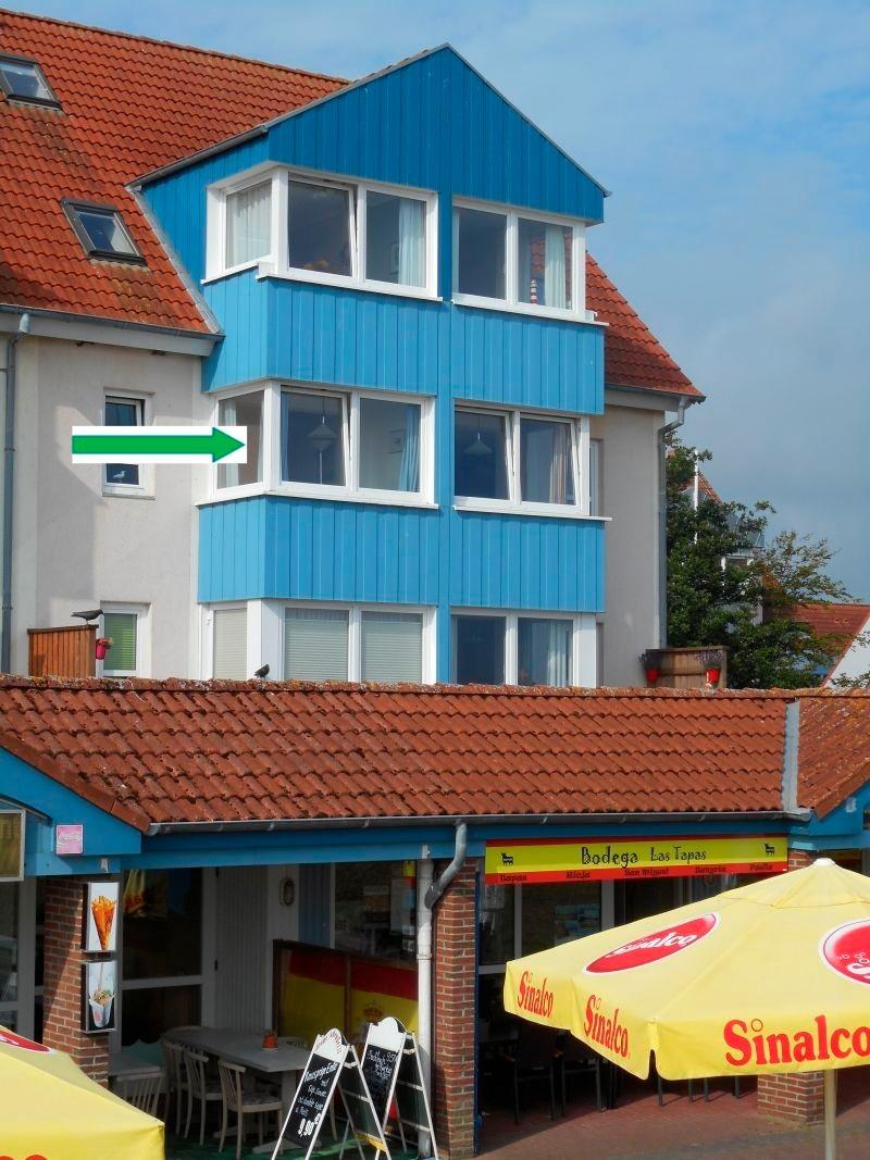 Die rund 42 qm große Wohnung bietet Meeresblick pur. Am Esstisch im Erker kann man gemütlich essen, abends ein Glas Wein beim Meeresrauschen am offenen Fenster trinken oder nur aufs Meer mit seinem wechselnden Farbenspiel blicken, man kann Schiffe beobachten oder spielen.