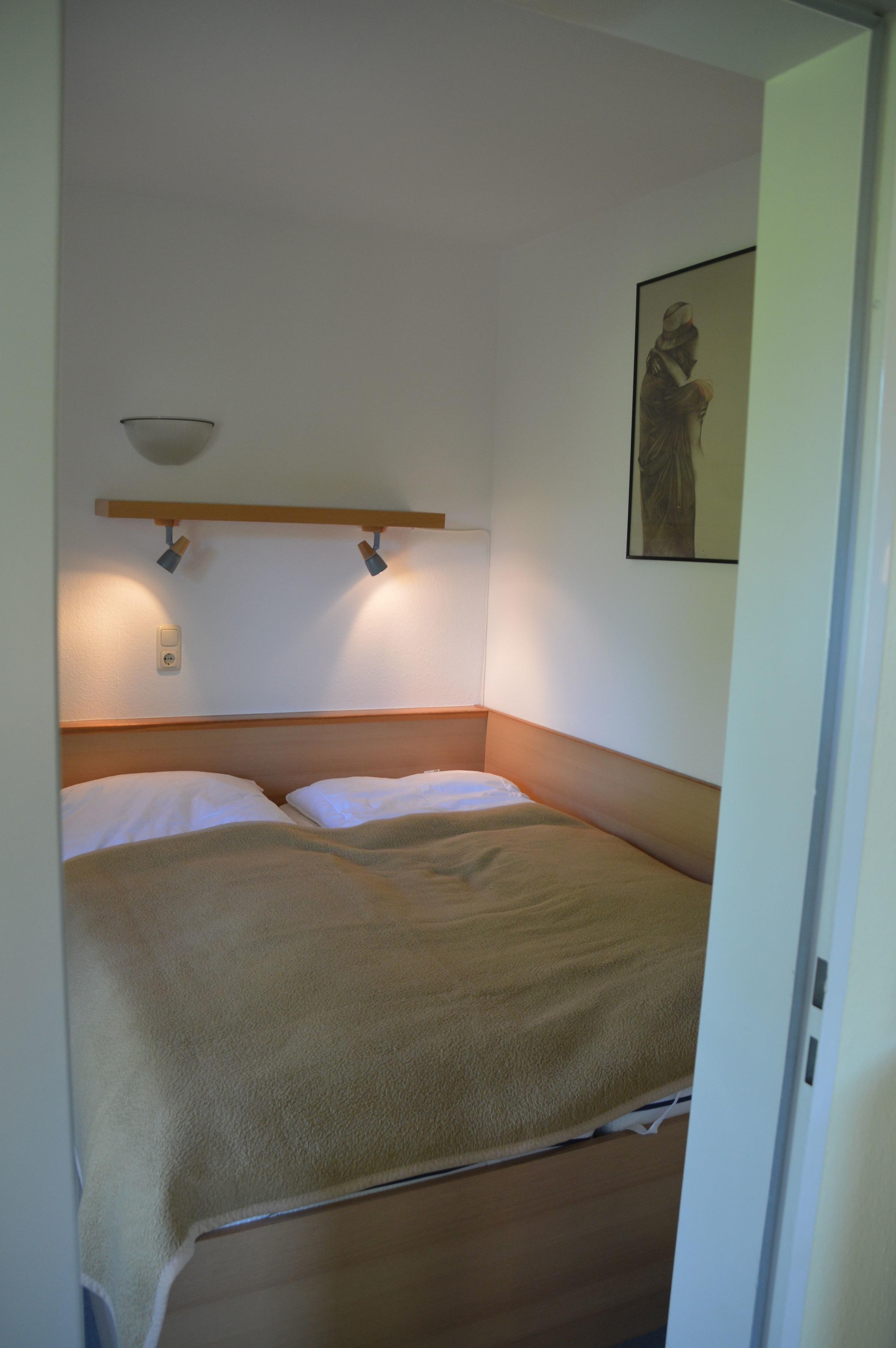 Das Wohnzimmer besticht in seiner Freundlichkeit durch seine Fensterfronten und bietet aufgrund der gemütlichen Couch und der Sitzgruppe beste Voraussetzungen zum Entspannen und ein behagliches Ambiente für einen Spieleabend. Die Kochnische ist ausgestattet mit einem 2-Platten-Herd nebst Dunstabzugshaube, einer Mikrowelle (mit Backfunktion) und einem Geschirrspüler. Das kleine Schlafzimmer verfügt über ein Doppelbett (160 x 200 ) und das innen liegende, helle Badezimmer über eine Dusche sowie WC.