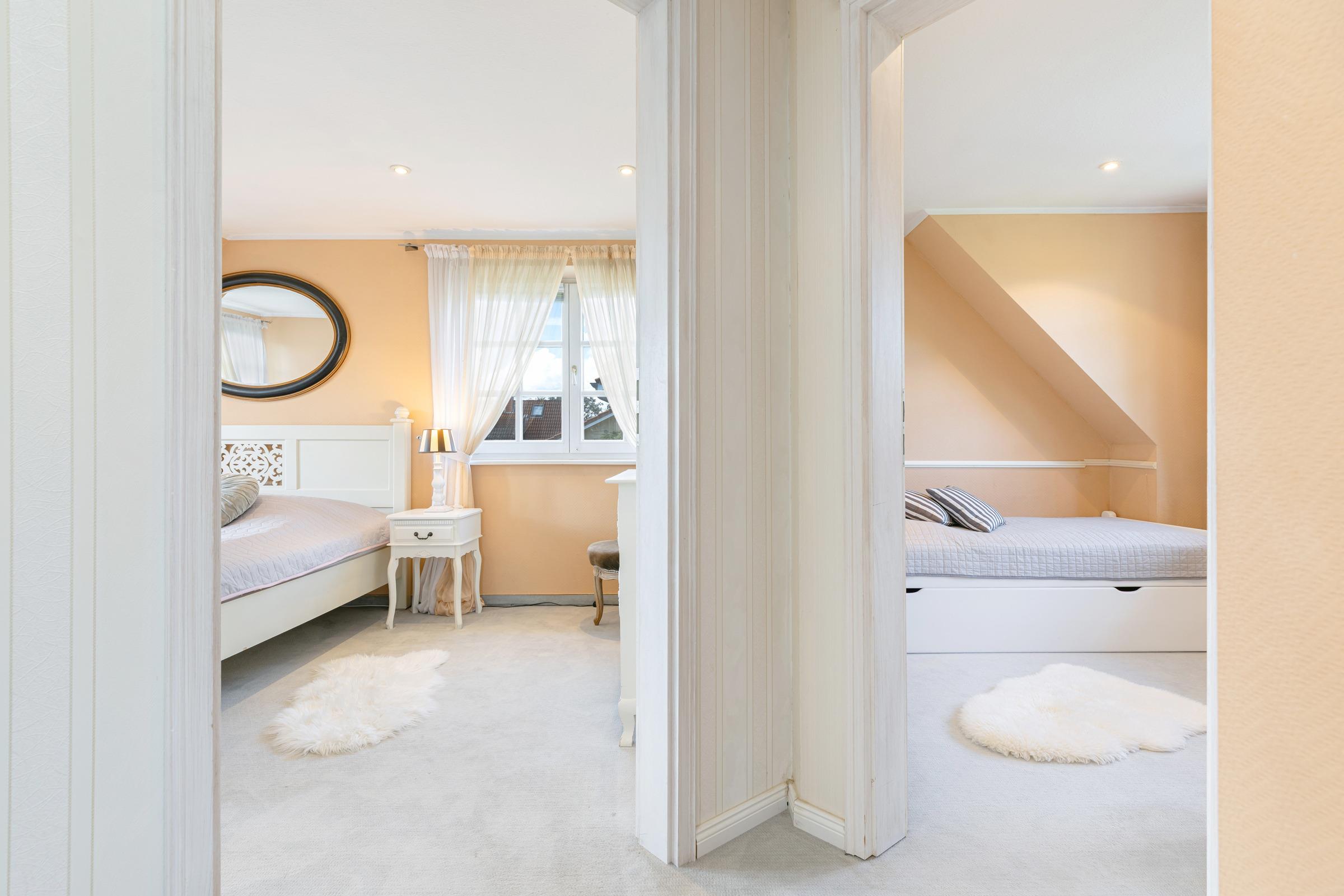 Schlafzimmer 2: 1 Doppelbett (2 x100x200 cm), Kommode, Verdunkelung: Außenrollläden, Kinderbett