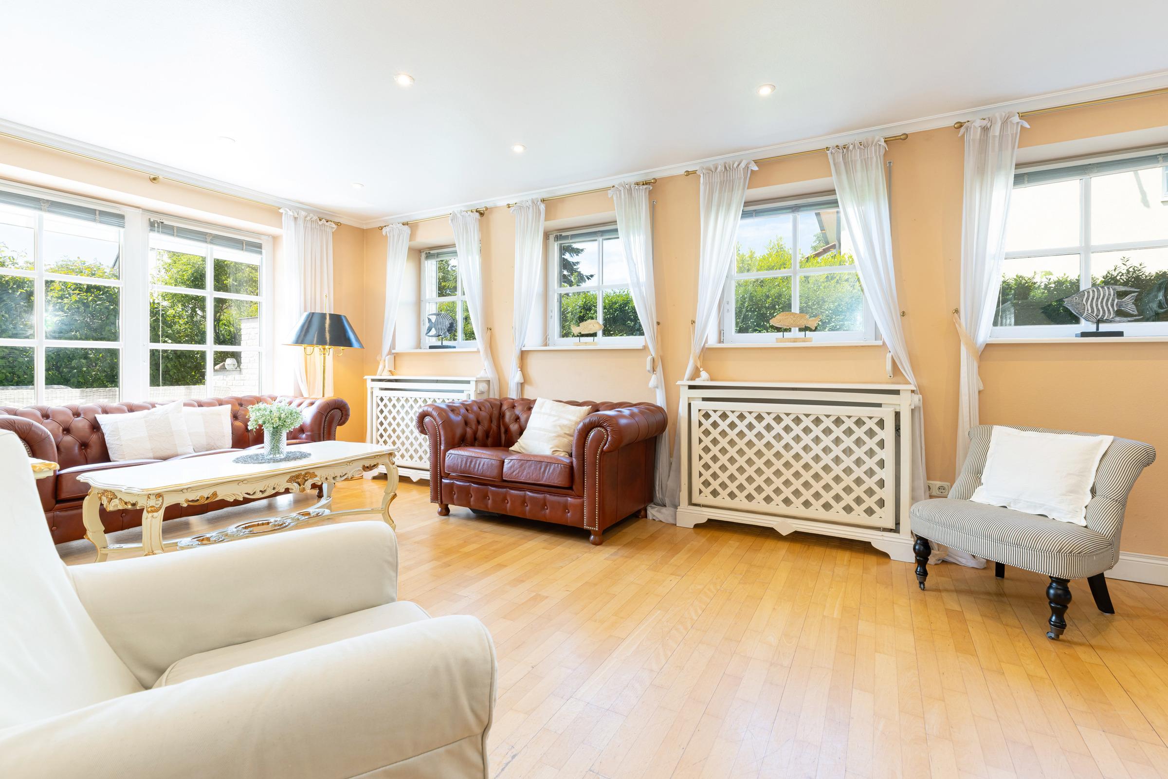 Ausgesuchte Möbel und liebevolle Dekoration bieten ein besonderes Ambiente. Für das Plus an Gemütlichkeit sorgt der Kachelofen im lichtdurchfluteten Wohnzimmer, der in den Essbereich und die voll ausgestattete Wohnküche übergeht.