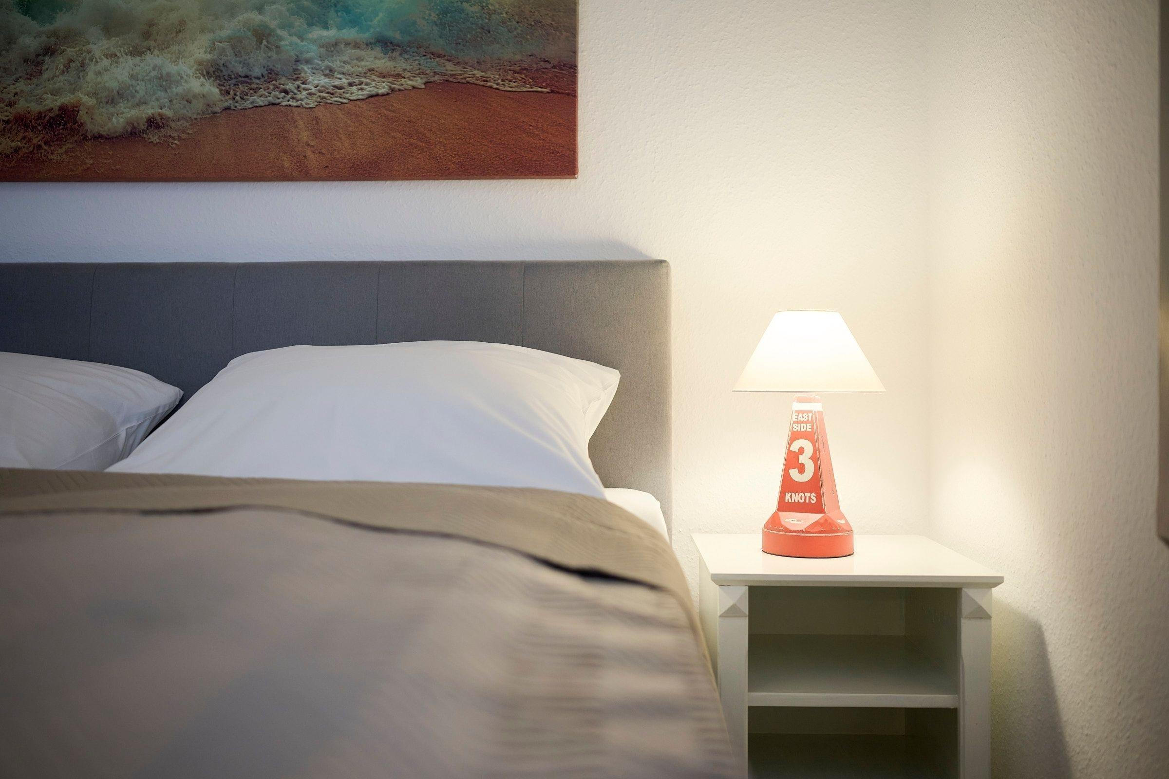 Vom Balkon aus haben Sie einen Blick auf die Ostsee - im Sommer durch die Blätter vom Baum im Nachbarsgarten etwas eingeschränkt. Einen erholsamen Schlaf bietet Ihnen das Boxspringbett (160x200 cm). Das geräumige Duschbad bietet viel Platz und ist durch die ebenerdige Dusche auch für Personen mit Bewegungseinschränkung geeignet. Das Waschbecken ist unterfahrbar und neben dem WC ist eine Klappstütze angebracht.
