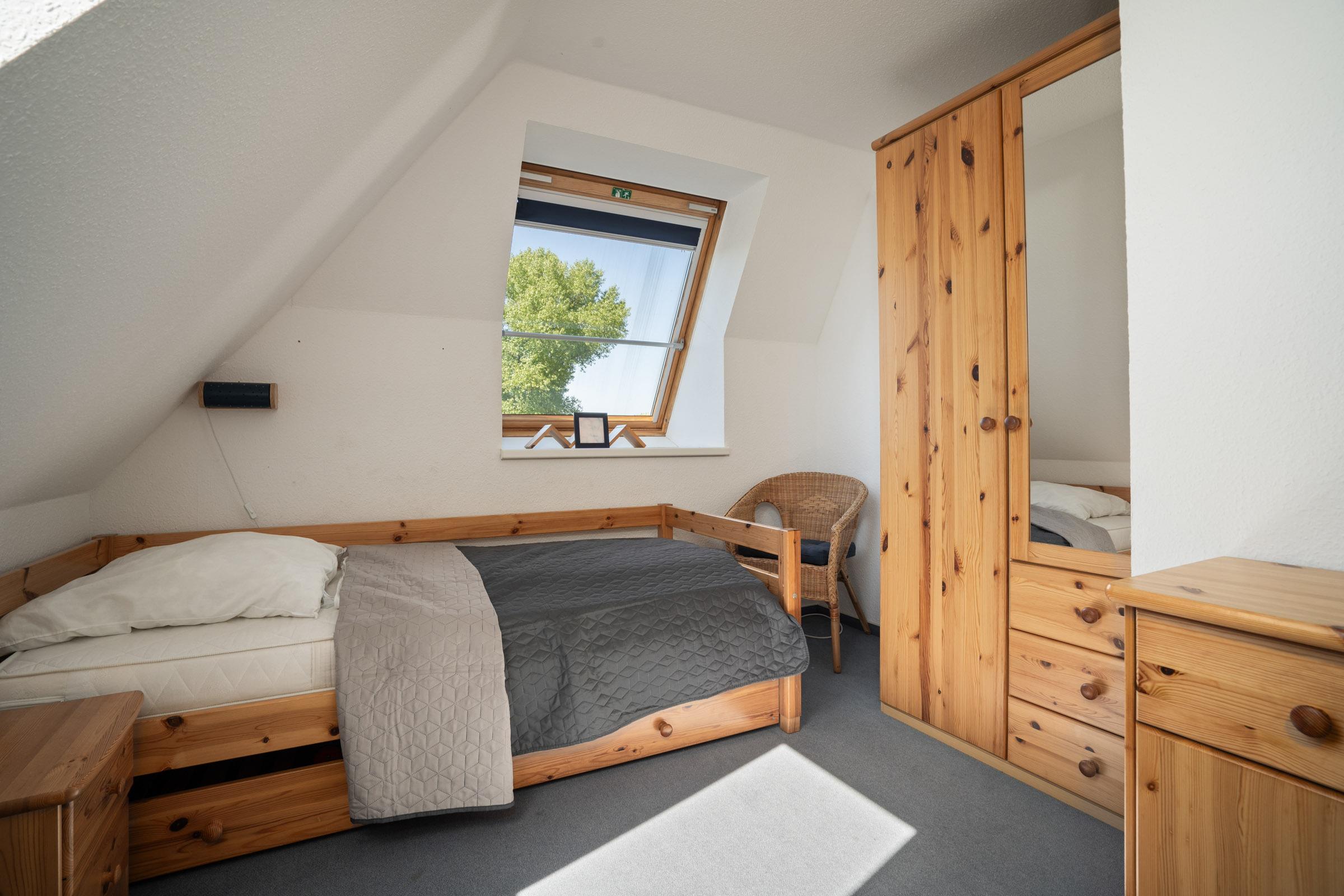 Schlafzimmer 2 (DG): 2 Einzelbetten (je 90x200 cm), Kleiderschrank, Verdunkelungsmöglichkeit