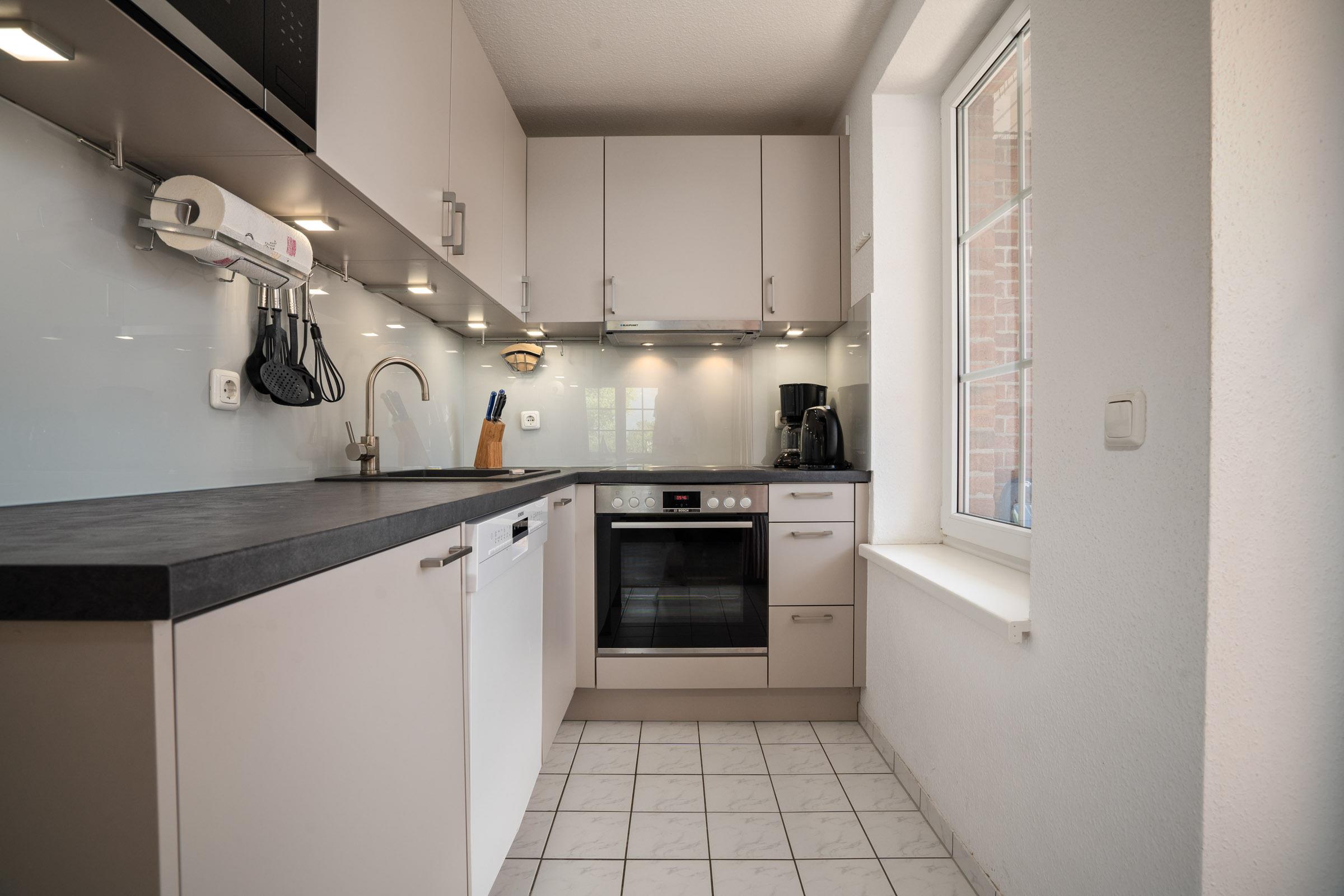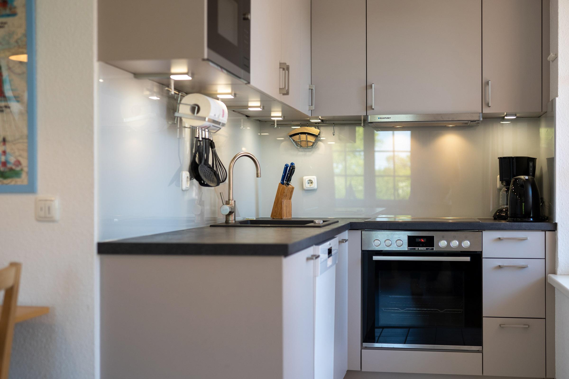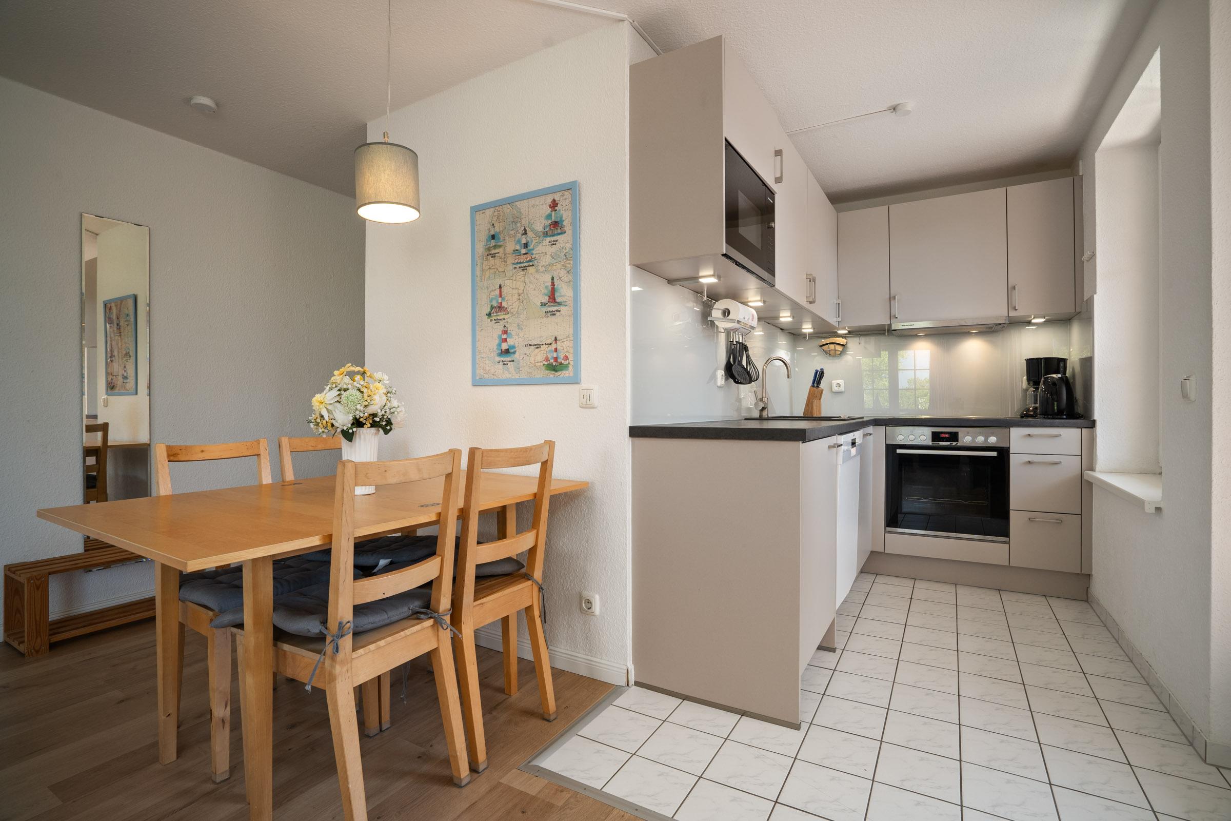 Diese helle, moderne Ferienwohnung im 1. OG bietet auf 3 Zimmern bis zu 4 Personen Platz für einen erholsamen Urlaub am nur 250 m entfernten Schöneberger Strand.