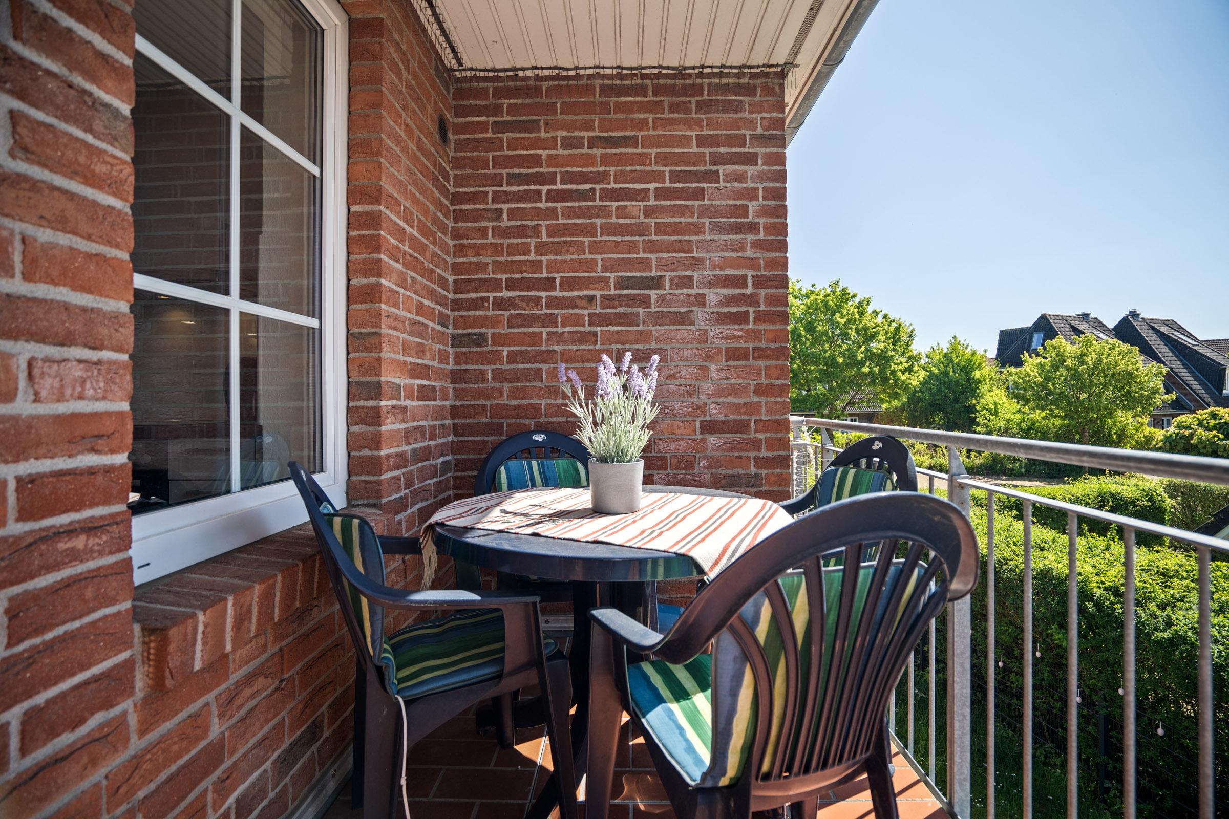 Auf dem Balkon können Sie in der Morgensonne in den neuen Urlaubstag bei einem ausgedehnten Frühstück starten.