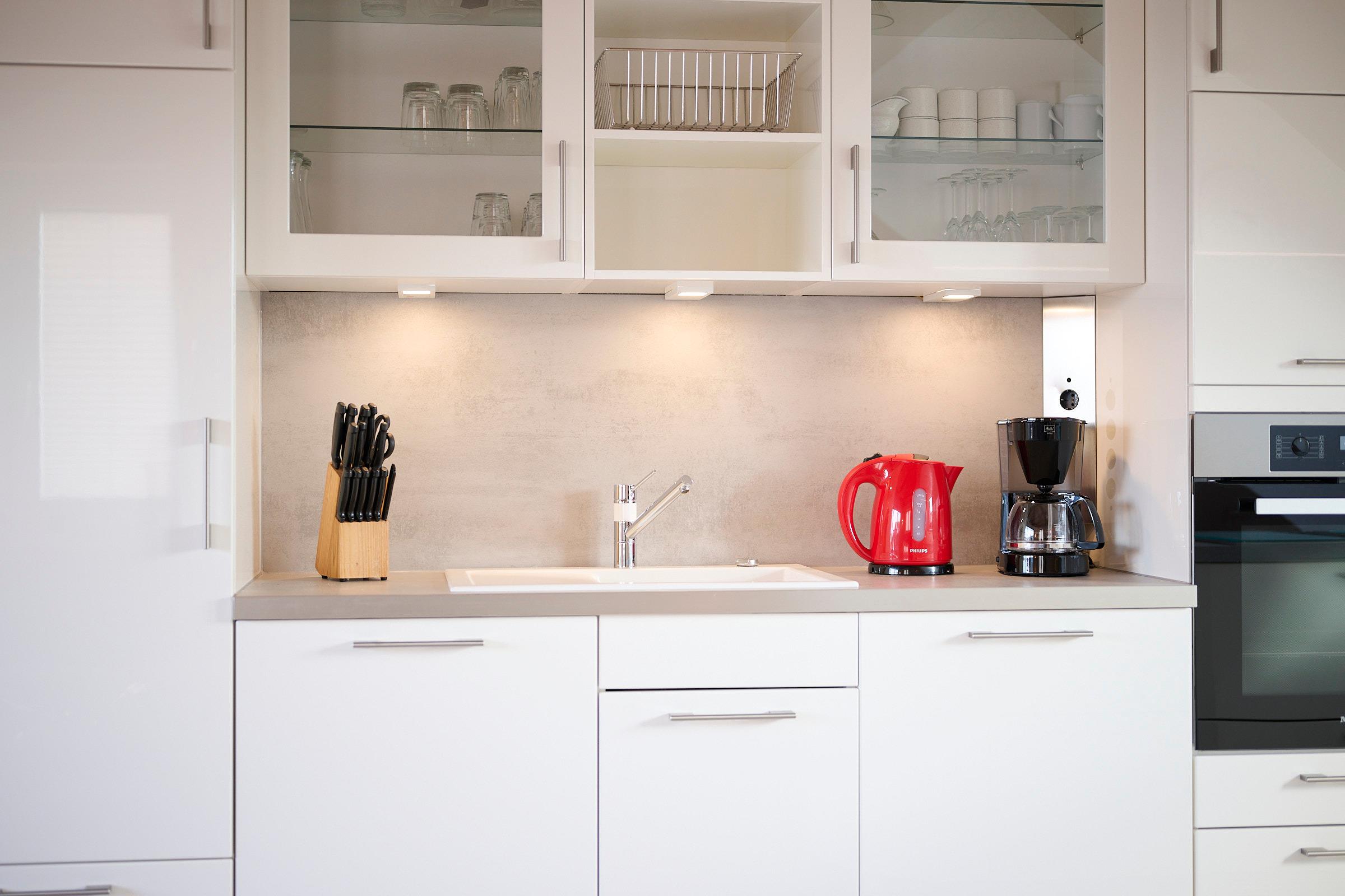 Vom großzügigen, lichtdurchfluteten Wohnzimmer können Sie direkt auf den zur Sonnenseite gerichteten Balkon treten. Der Balkon ist mit bequemen Gartenmöbeln, Sonnenschirm und einer Liege ausgestattet. Die mit allem Komfort ausgestattete Küche lässt keine Wünsche offen. Die Schlafzimmer sind mit einem komfortablen Boxspringbett und zwei Einzelbetten, die sich bei Bedarf zusammenstellen lassen, eingerichtet. Ein kostenloser WLAN–Anschluss verbindet Sie auch im Urlaub mit dem "Rest der Welt".