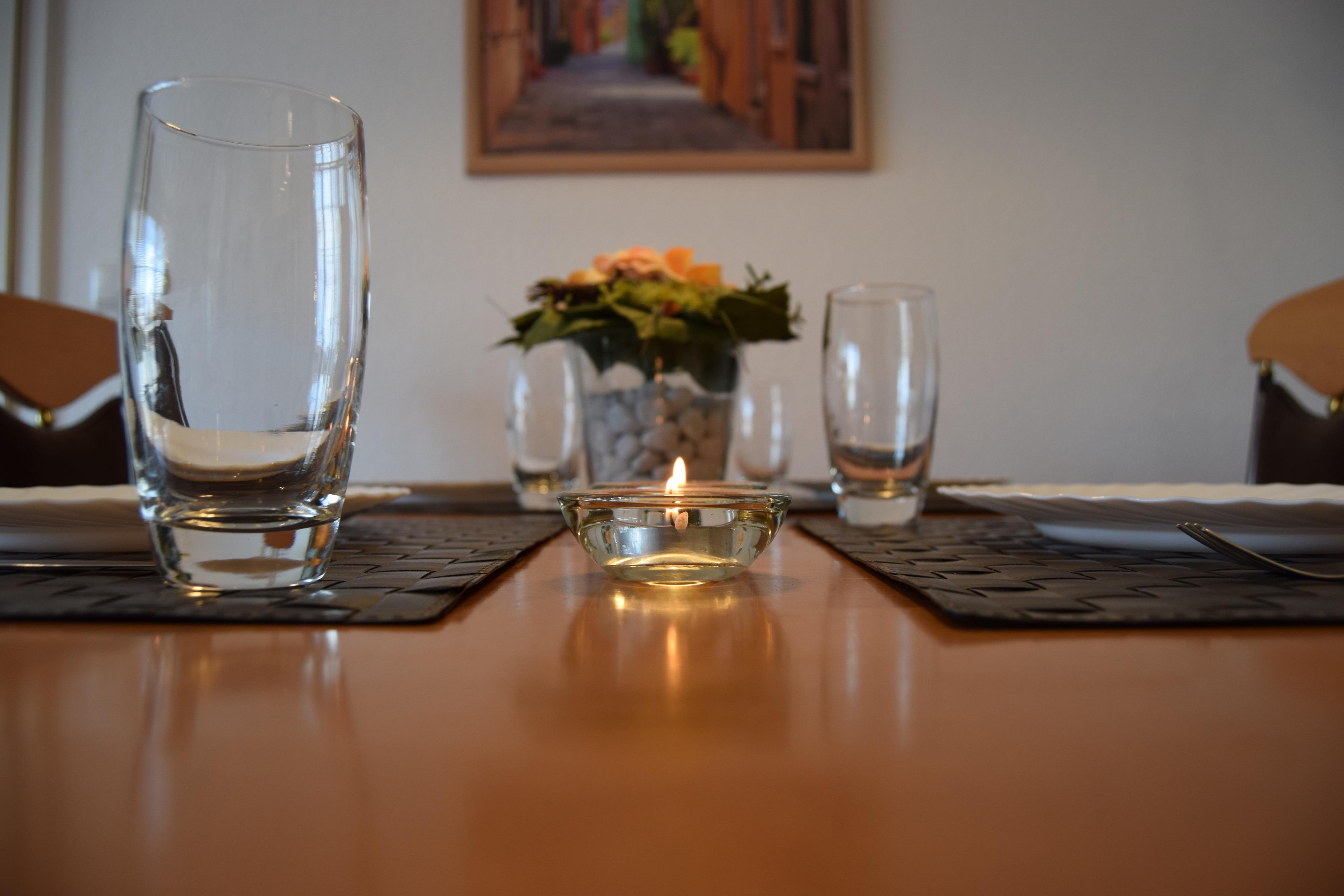 Den Mittelpunkt des Appartements bildet das Wohnzimmer mit Essbereich. Am großen Esstisch lässt es sich wunderbar frühstücken und auf der gemütlichen Couch kann man den Abend vor dem Fernseher ausklingen lassen. Es gibt ein Schlafzimmer mit Doppelbett (1,80 x 2,00 m) sowie ein weiteres Schlafzimmer mit 2 Einzelbetten (0,90 x 2,00 m). Bettwäsche und Handtücher können auf Wunsch dazu gebucht werden. Gerne dürfen Sie auch Ihren Hund mitbringen.