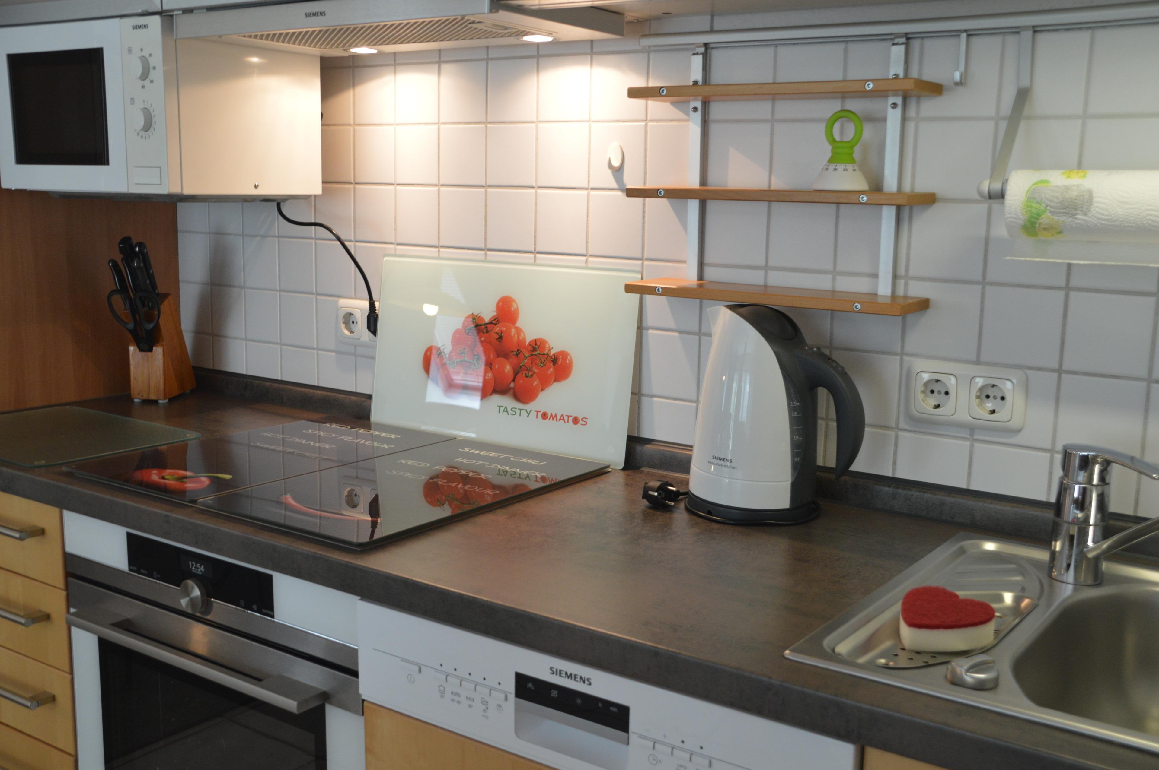 In der zum Wohnzimmer geöffneten und bestens ausgerüsteten Küche finden Sie einen 4-Platten-Herd, Backofen, Geschirrspüler und einen Kühlschrank mit Gefrierfach. Auch eine Mikrowelle, ein Toaster und eine Kaffeemaschine sind vorhanden. Ein EDEKA-Markt (saisonale Öffnungszeiten) in weniger als 500m Entfernung sorgt für ausreichend Verpflegung während Ihres Aufenthaltes. Das Badezimmer verfügt über Waschmaschine, Dusche, Föhn und WC.